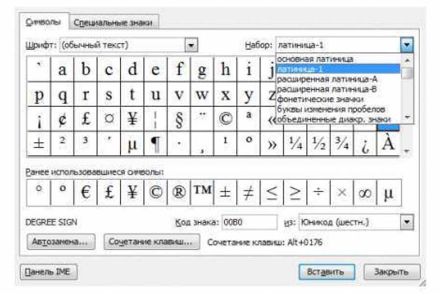 Градус в ворде на клавиатуре