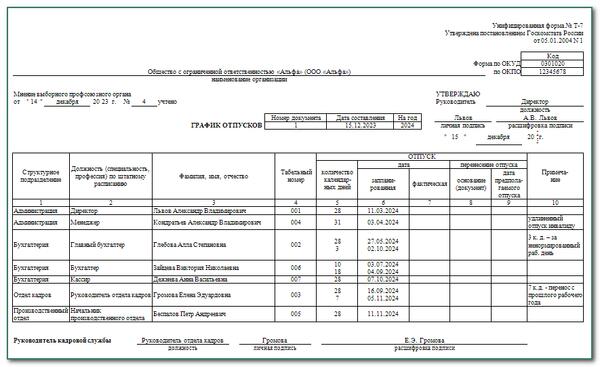 График отпуска рб