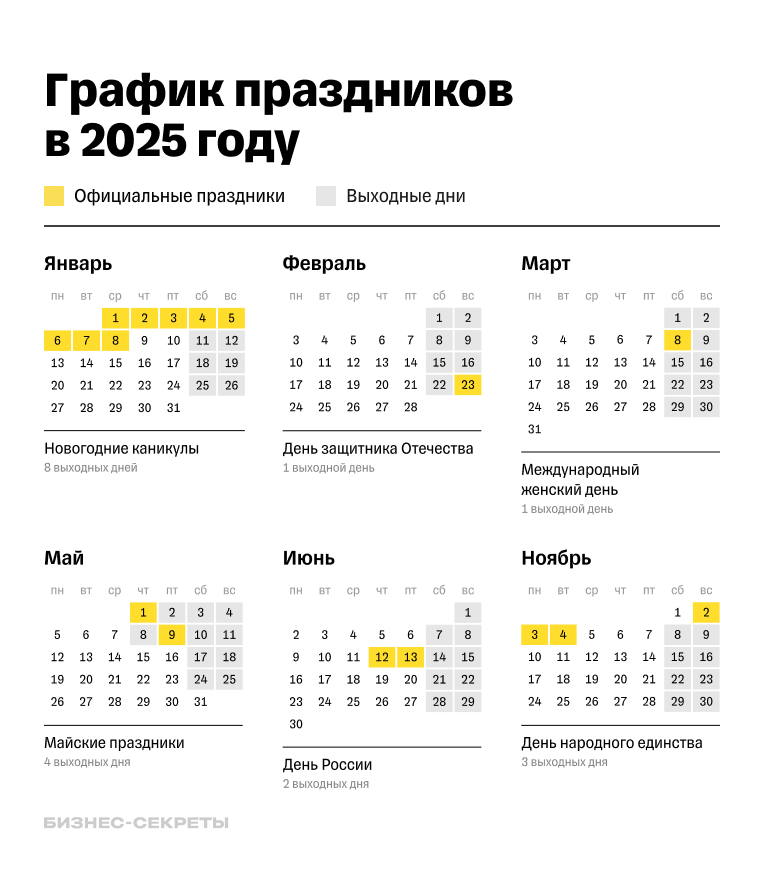 График работы 2025 с праздниками и выходными