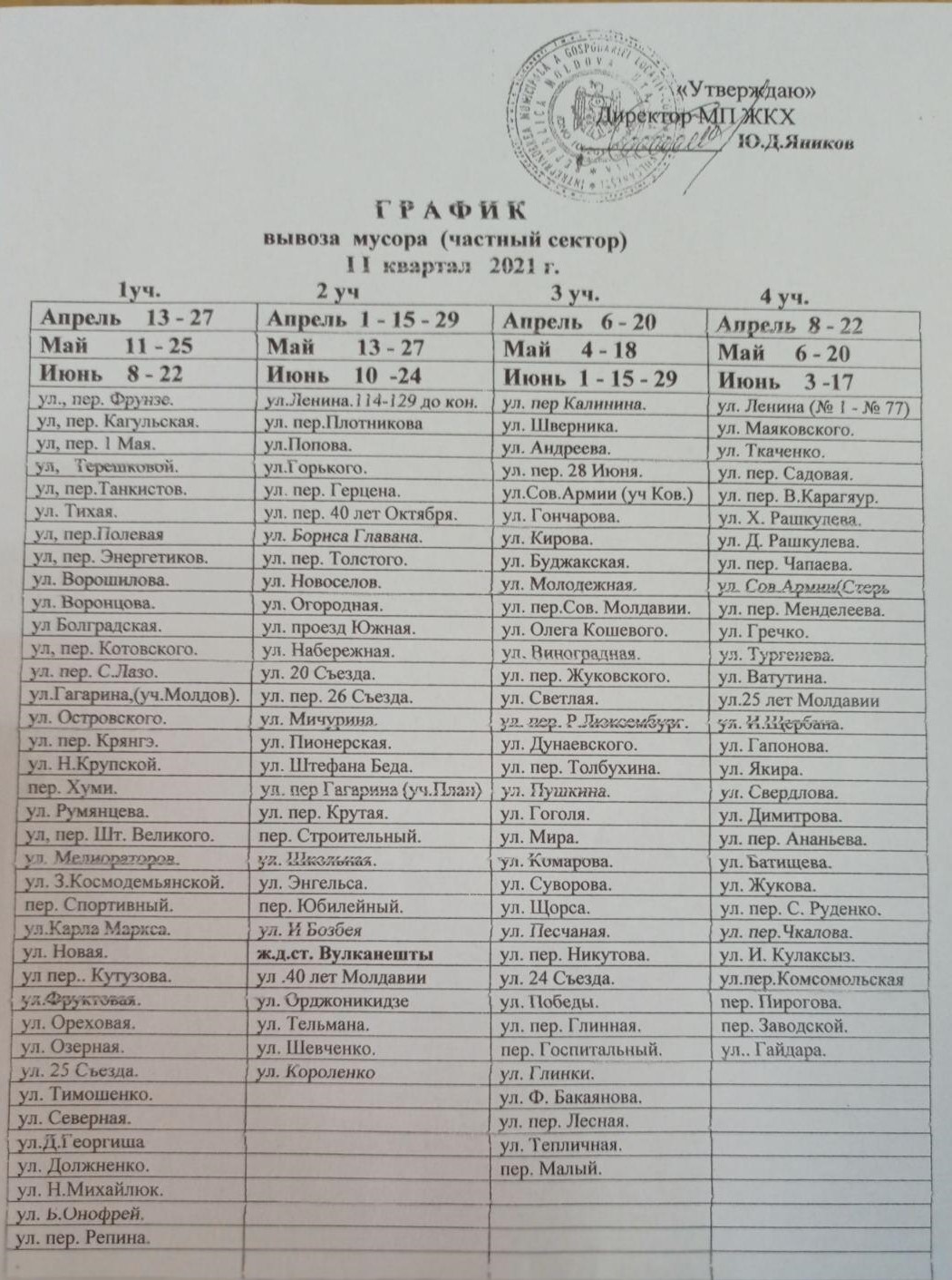 График работы свалки