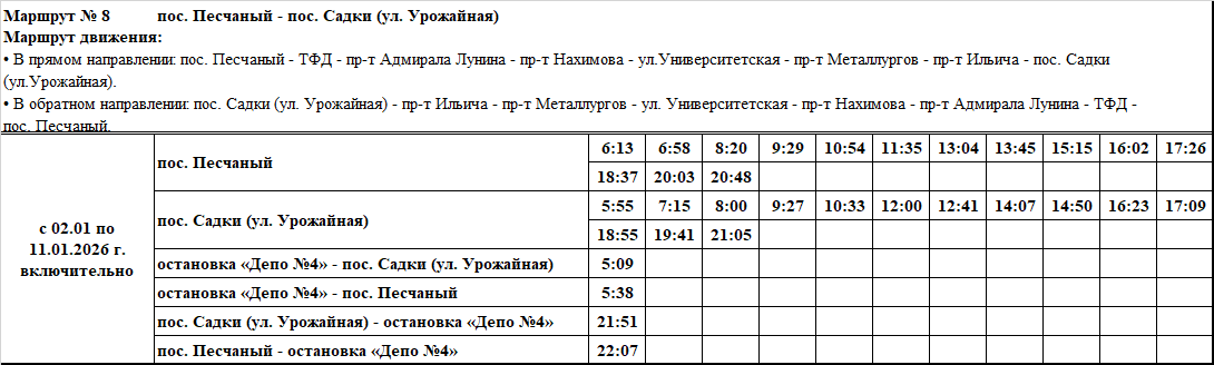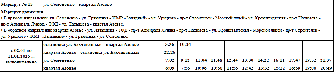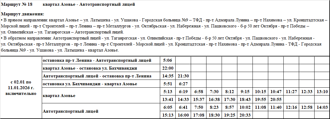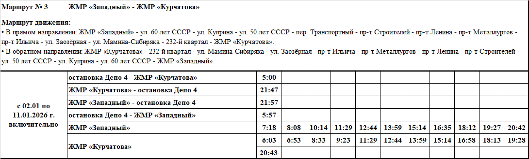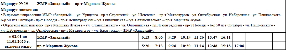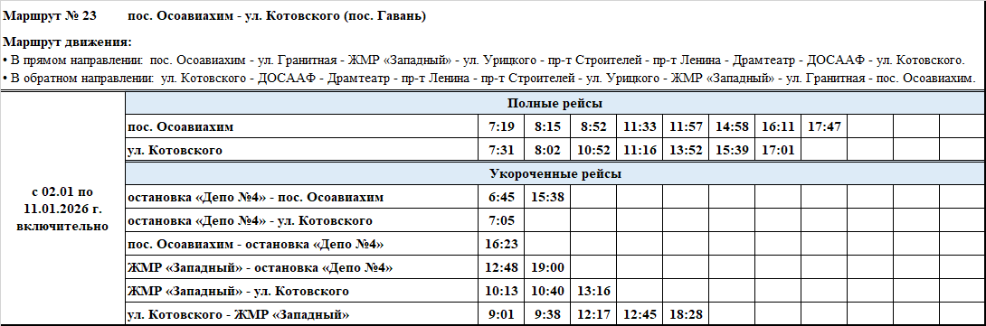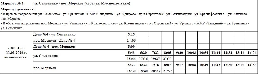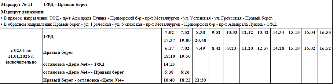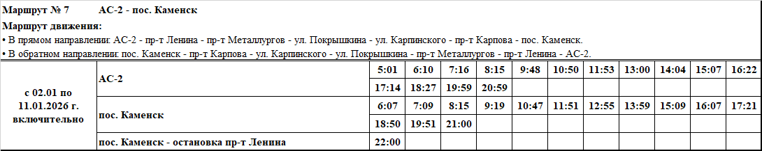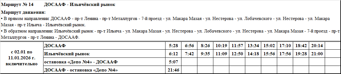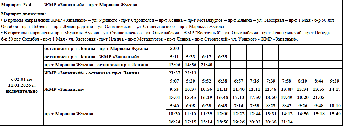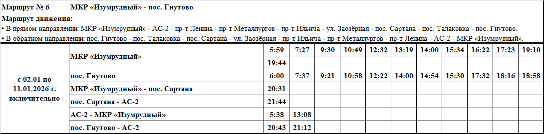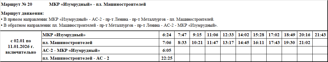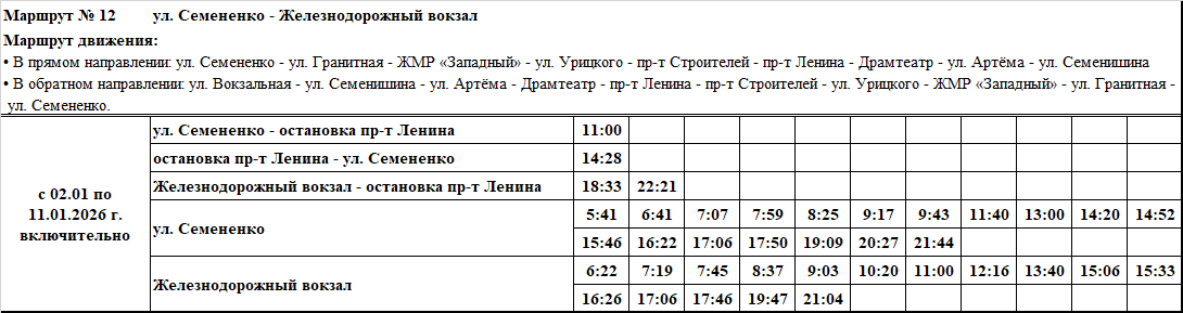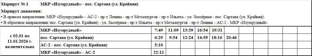 Графики и маршруты движения городских автобусных маршрутов c 02.01 по 11.01.2026 г. включительно.