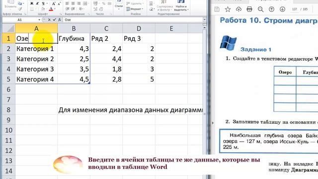 Графики по таблице в ворде