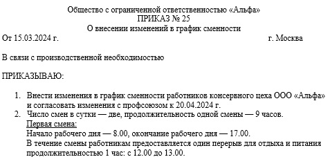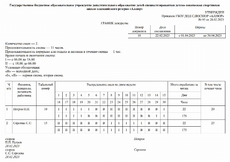 Графики сменности охраны