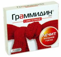 Торговое название: Граммидин (Grammidin) Международное название: Грамицидин С+Цетилпиридиния хлорид& (Gramicidin S+Cetylpyridinium chloride)