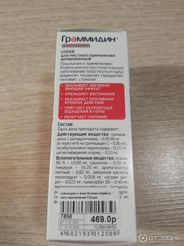 Цена 422 руб . Граммидин спрей для местного применения 0,06мг+0,1мг/доза 112 доз, 1 шт . 9 отзывов . Цена 588 руб . Граммидин с анестетиком спрей для местного применения 112 доз, 1 шт . 15 отзывов . Цена 570 руб . Граммидин детский спрей для местного применения 0,03мг+0,1мг/доза 112 доз, 1 шт . Цена 515 руб .