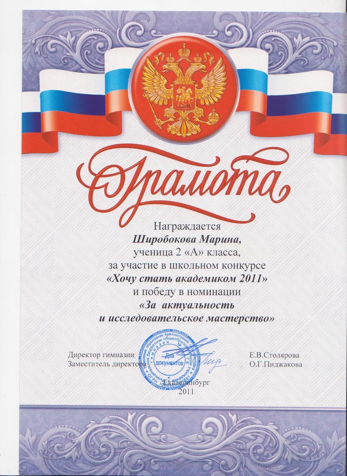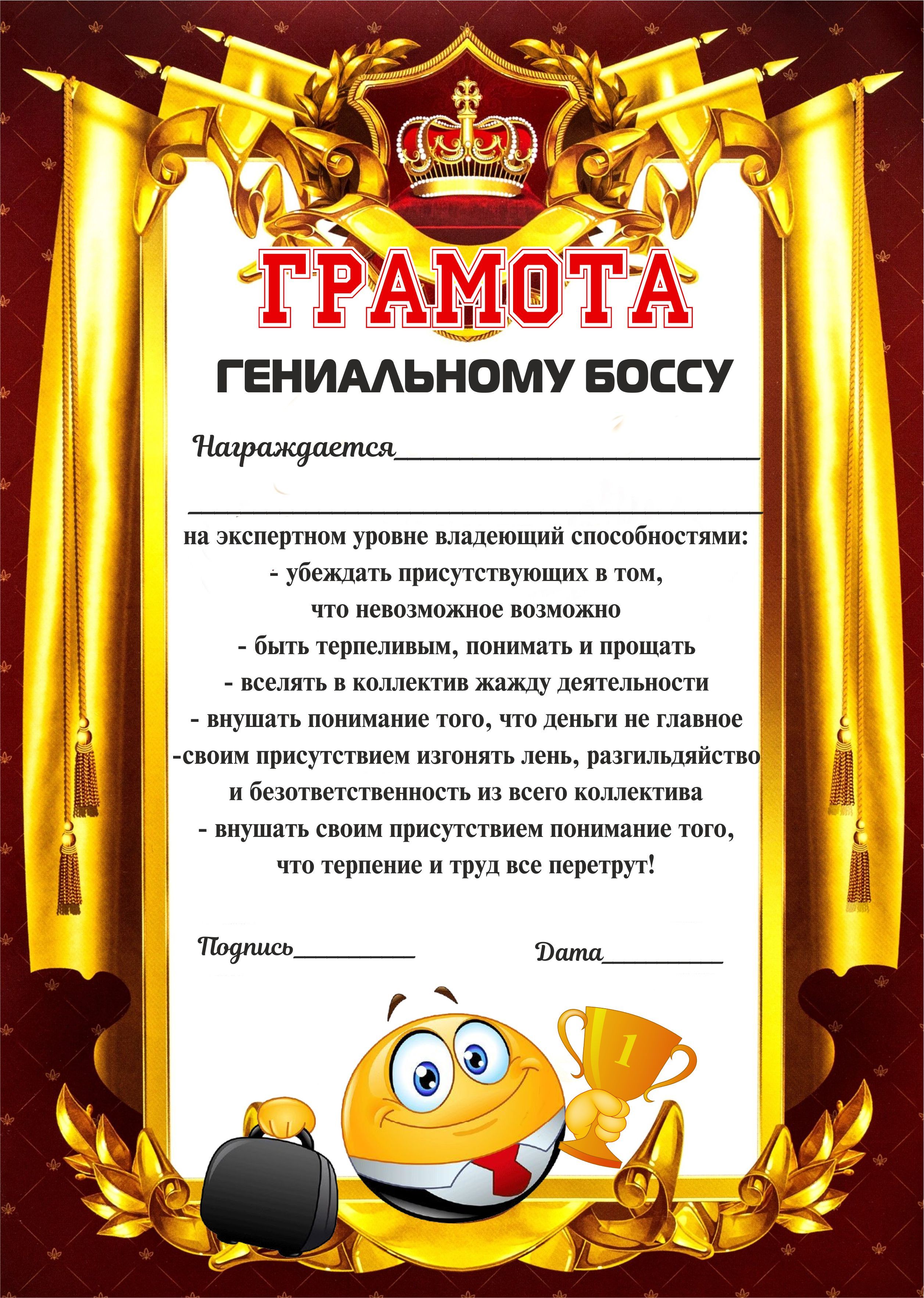 Грамота директору текст