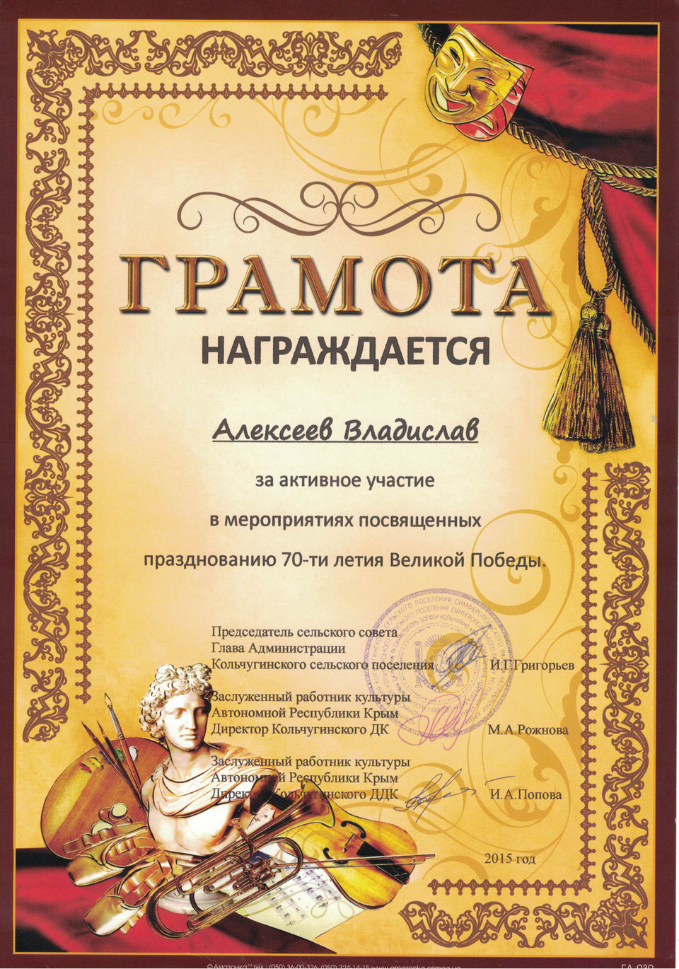 Грамота дома культуры