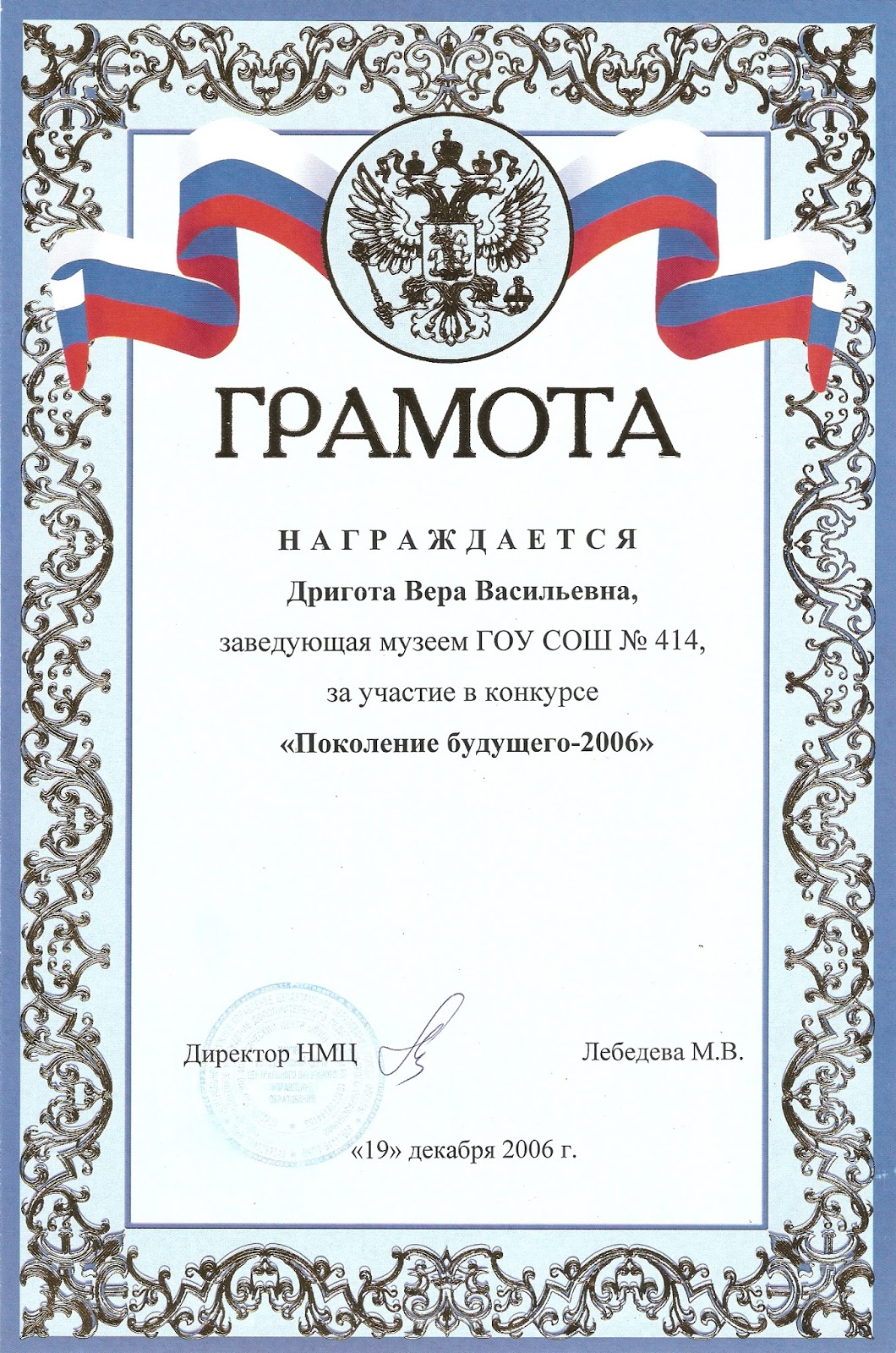 Грамота победителю игры