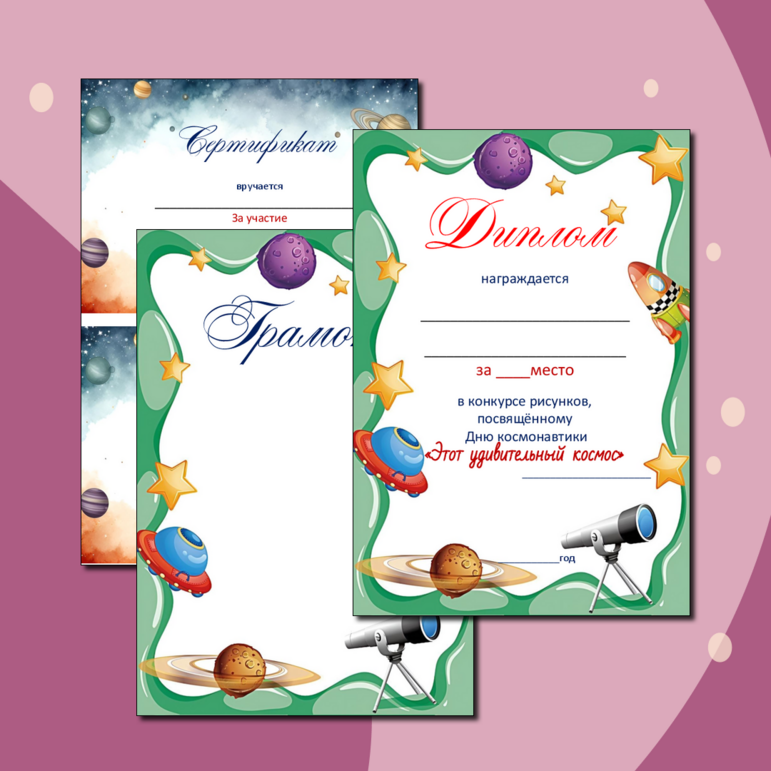 Грамота за рисунки ко дню космонавтики 143 фото