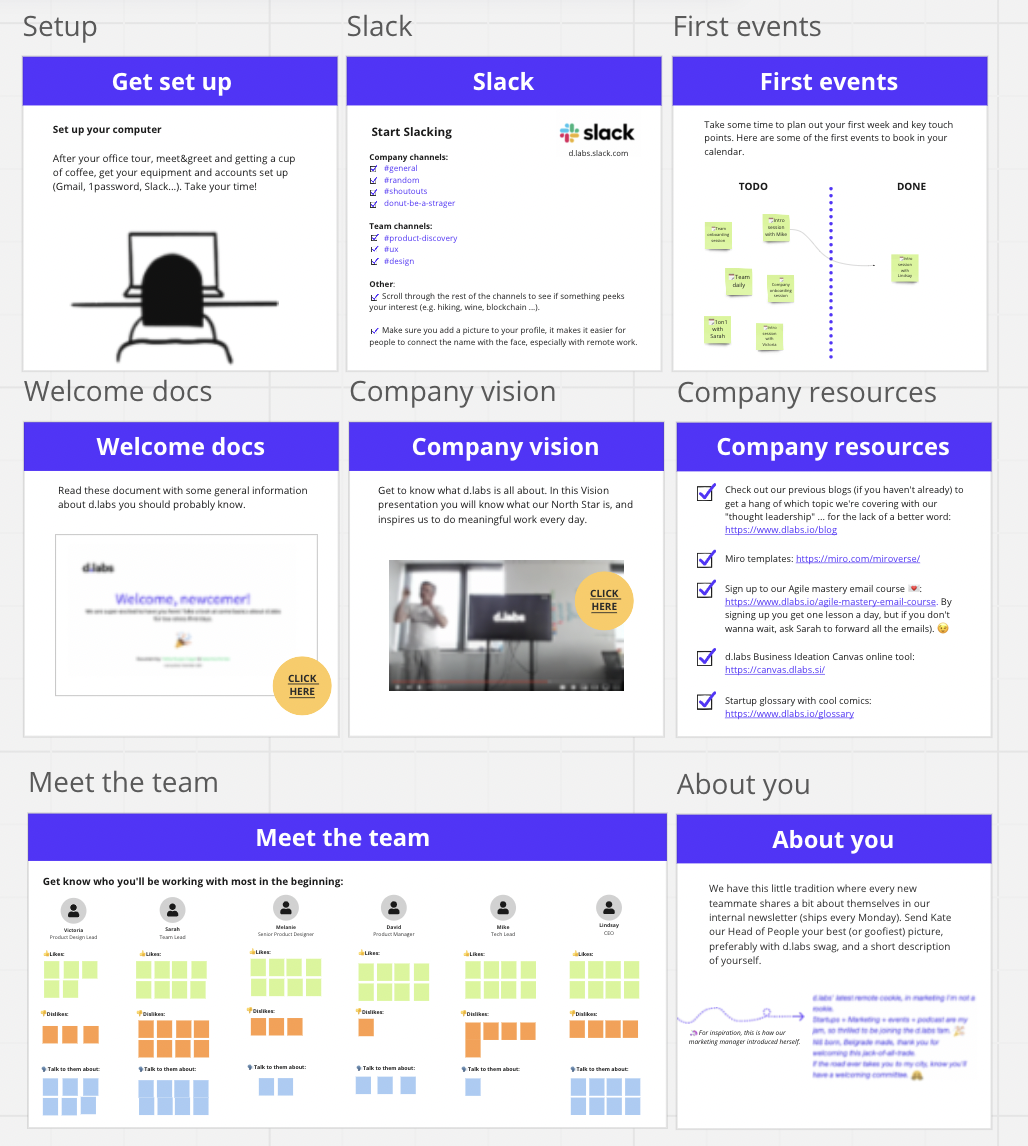 Ловите ссылку на темплейт: https://miro.com/miroverse/new-employee-onboarding-for-product-teams/