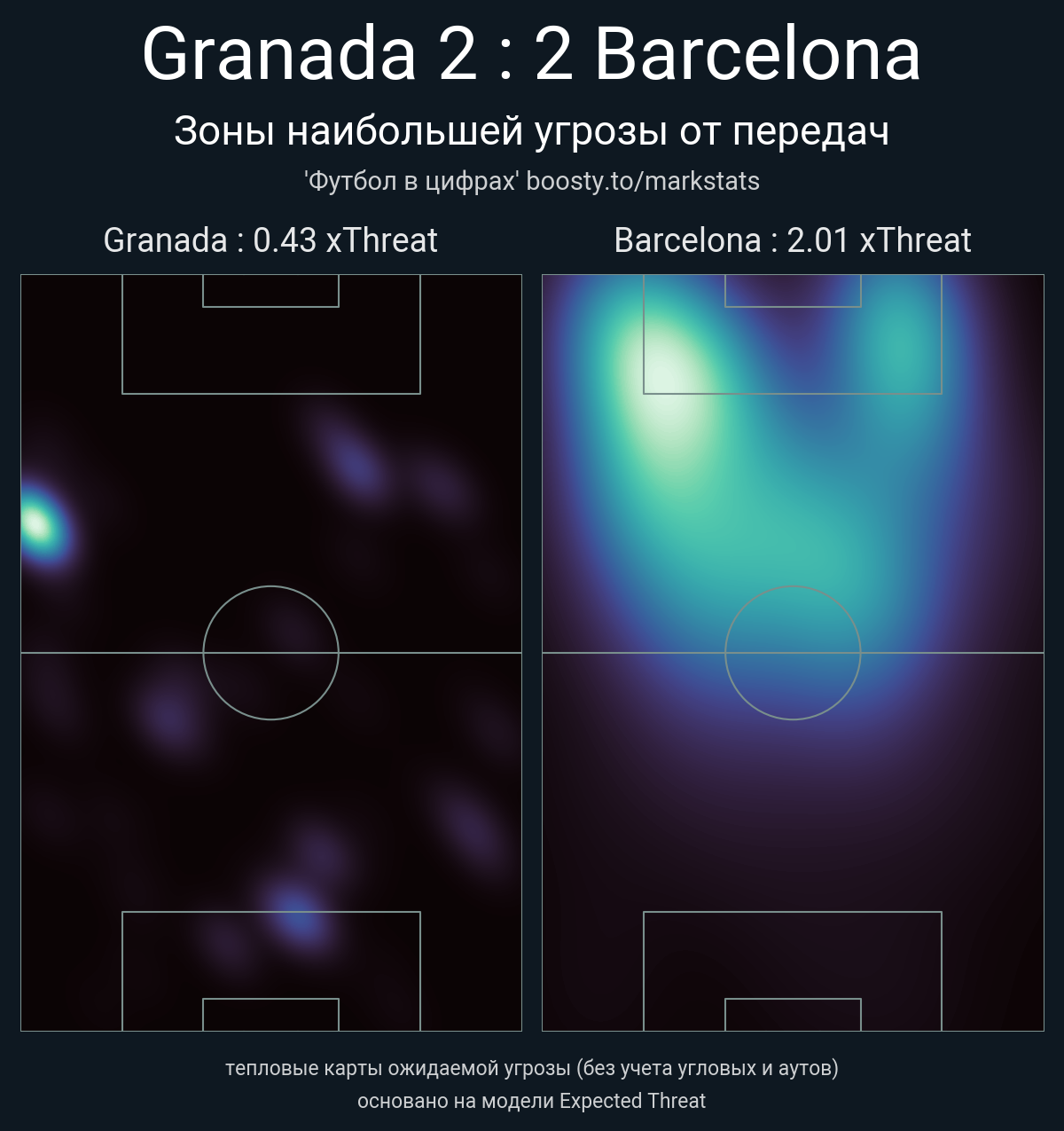 xThreat без учета угловых: 0.43 - 2.01