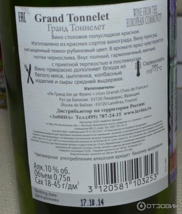Grand tonnelet вино белое