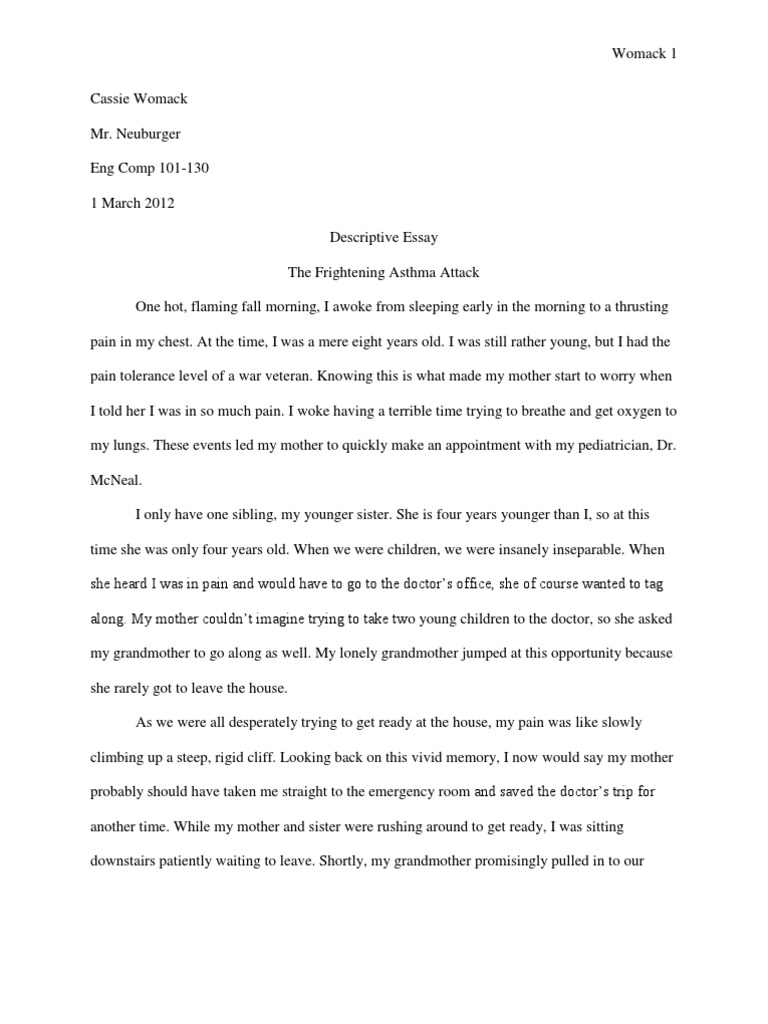 Example Of A Personal Essay . My grandma lived alone after my grandfather sadly passed away in 2001 that made her want to make the most of her life and live it to the fullest . 2012 October I hadn't long turned 10and my grandma had become blind in one eye which didn't help her health, my mum decided to go live with her for a couple of weeks to take care of her and make sure she was okay, not . . .