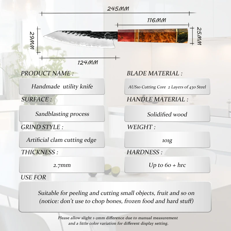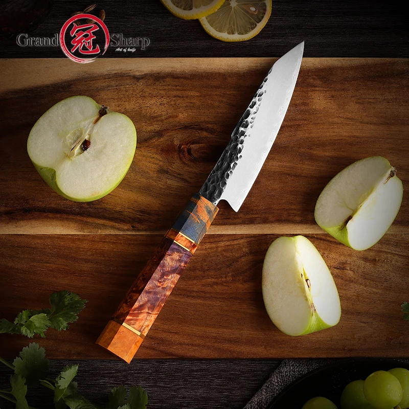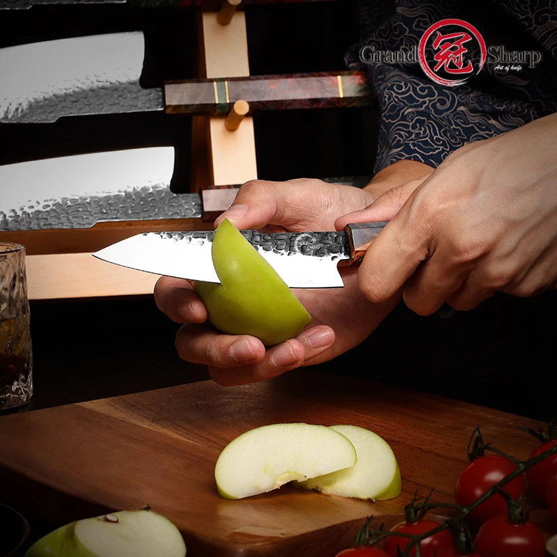 Grandsharp 5 Inch Utility Knife Handmade High Carbon Steel Japanese Kitchen Knives Peeling Meat Slicing Cutter with Gift Box - Купить с бесплатной доставкой