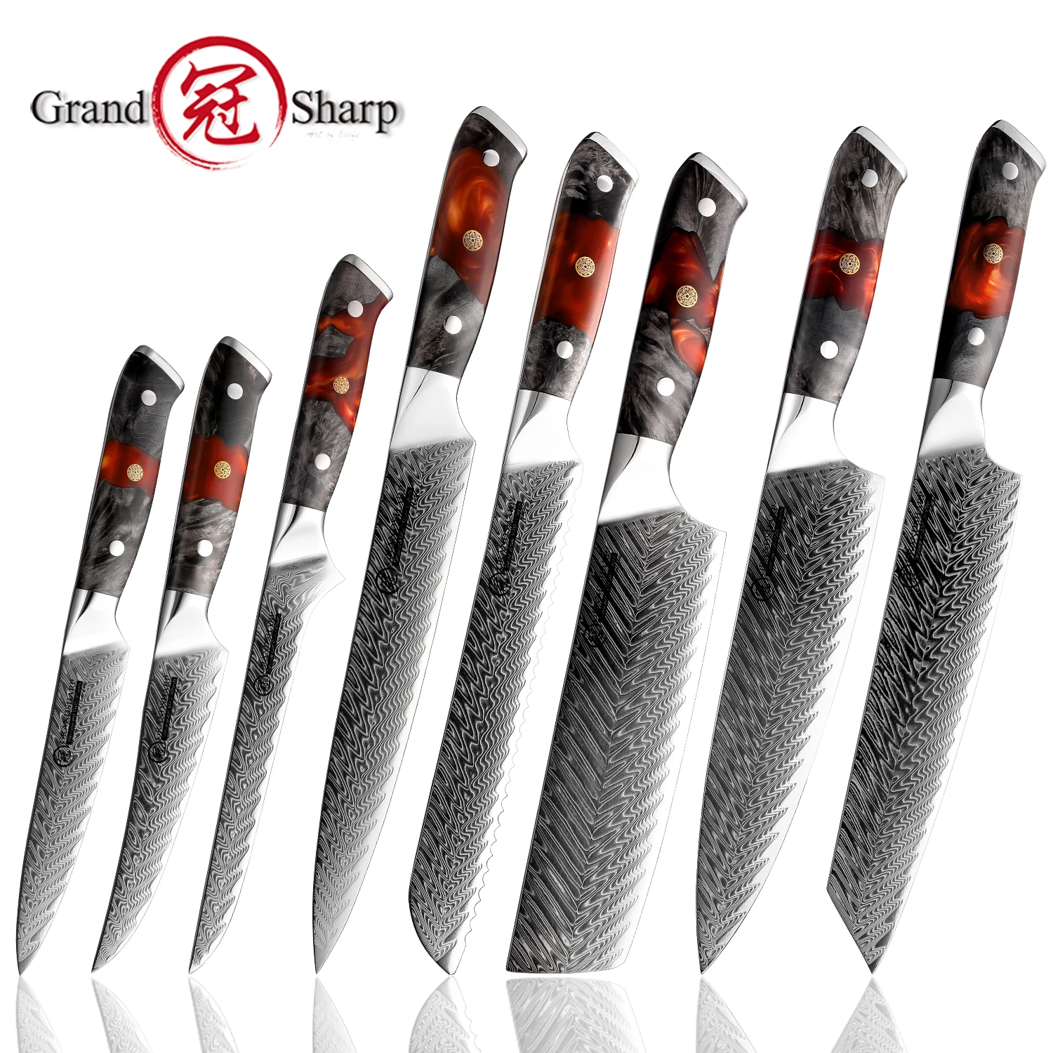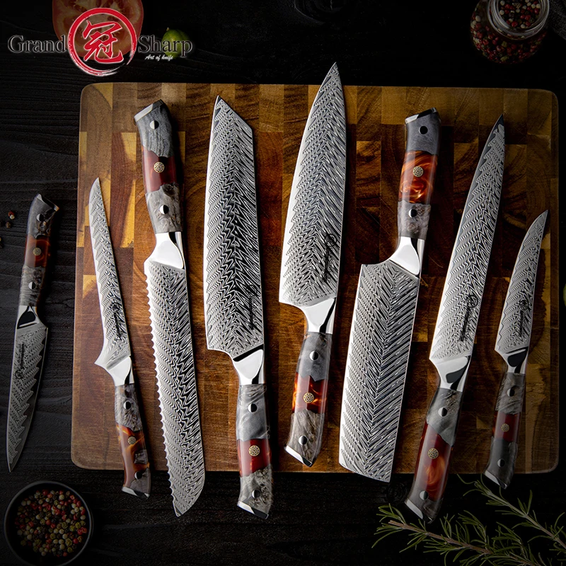 UHmXTuQbbJHere you can buy Grandsharp Japanese Kitchen Knife Set Real Damascus Chef Knifes Utility Boning Knives Meat Slicer Fruit Cutter Cooking Tools with free delivery to your post office.