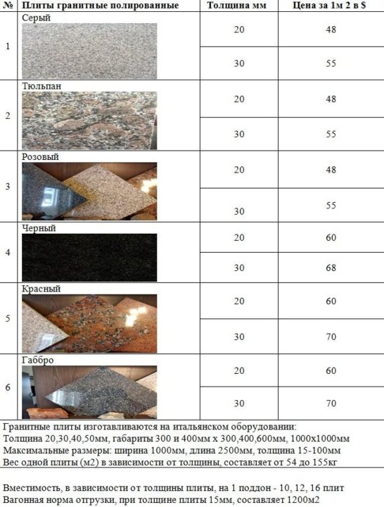 Гранит плитка размеры
