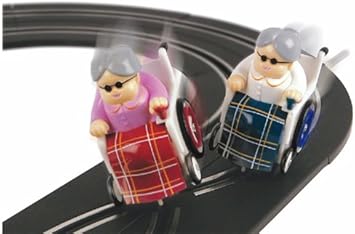 Wheelchair Guy: he sits on a wheelchair powered by jet . Segway guy: You ride a silver gray Segway that can jump into the air . Irresponsible Dad: an irresponsible father takes his son into a dangerous world by bike . Effective Shopper: a fat woman controls a motorized trolley with average speed . How to play . Use arrow keys to move .
