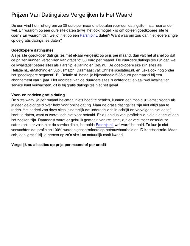Gratis Datingsite Vergelijken - Dating Sites kosten en . . .