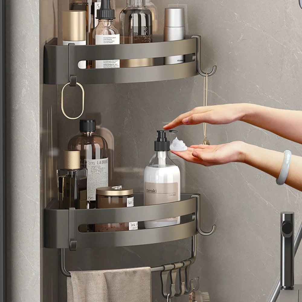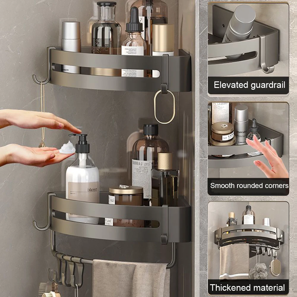 xEHcGhiOUBHere you can buy Gray Bathroom Shelving With Adjustable Spacing Aluminum Triangular Thickened Wall Mounted Non Perforated Corner Storage Rack with free delivery to your post office.