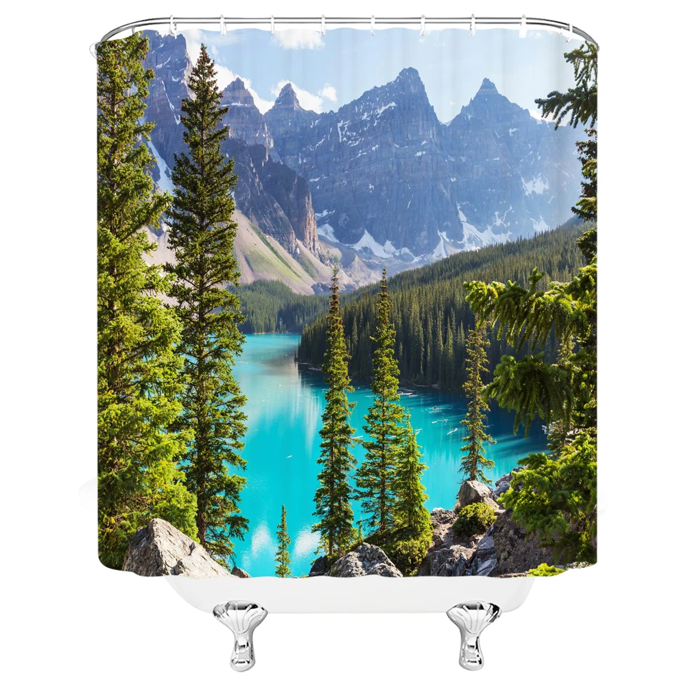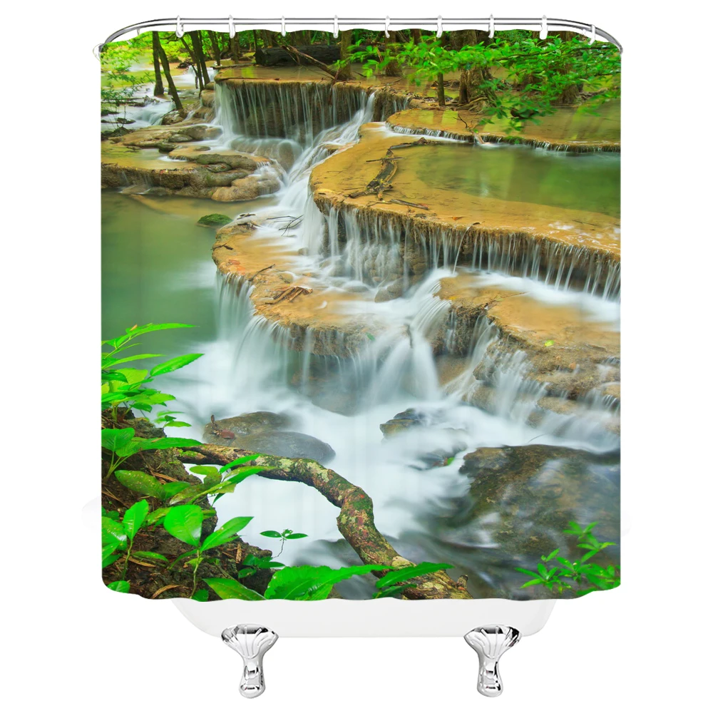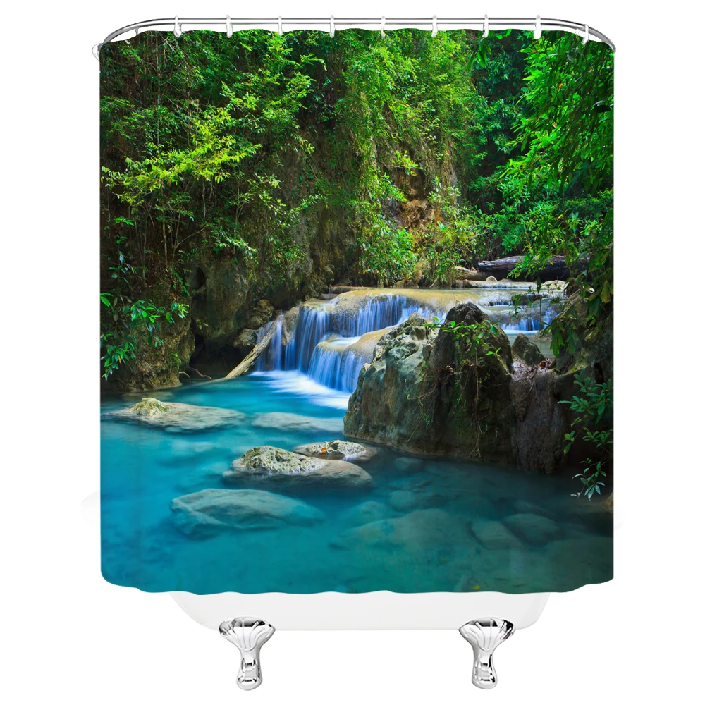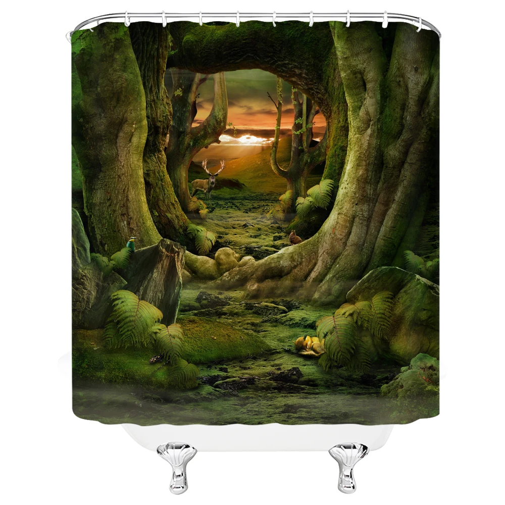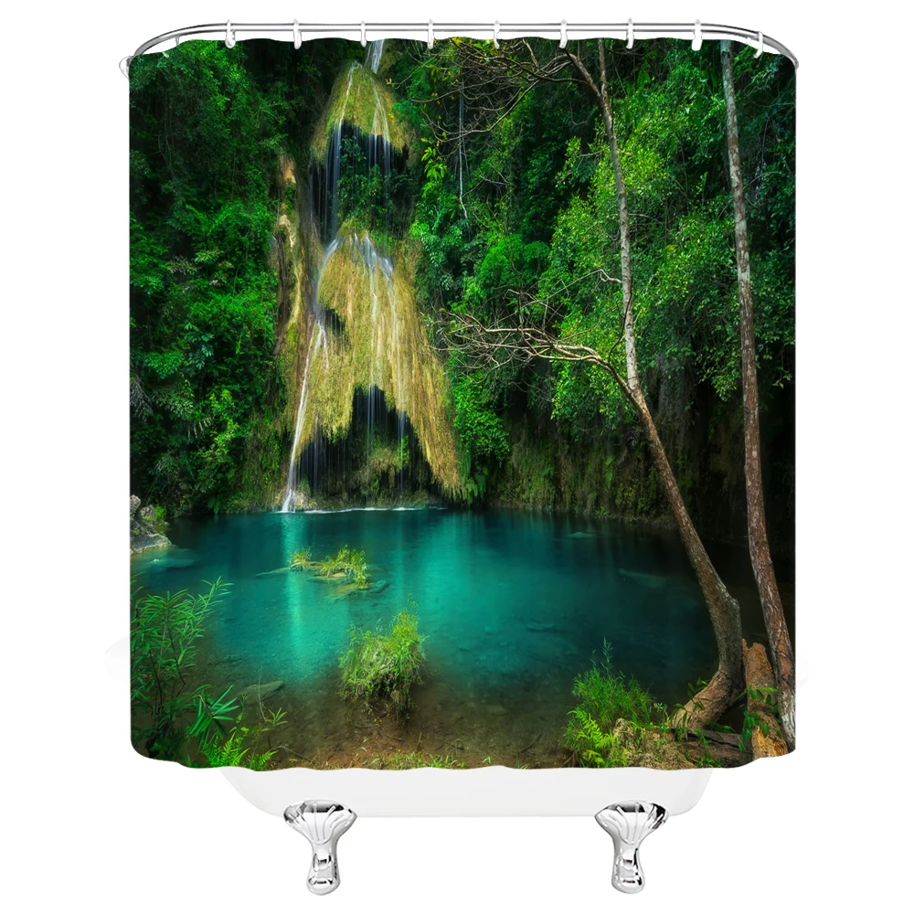 «Green Forest Scenery Shower Curtains Waterproof Bathroom Screen Polyester Moss Waterfall Lake Deer Trees Bath Curtain Home Decor» по лучшей цене на рынке! Всего за 16$ (1520рублей)