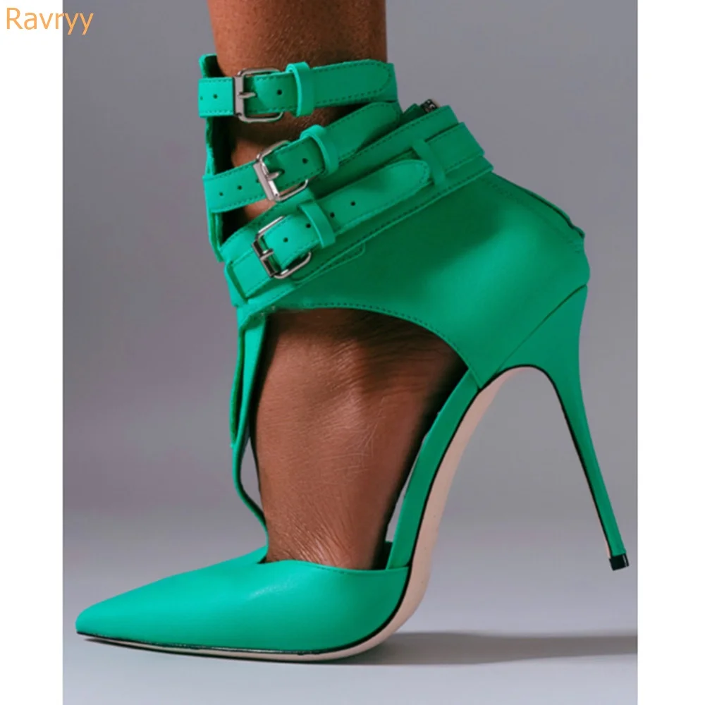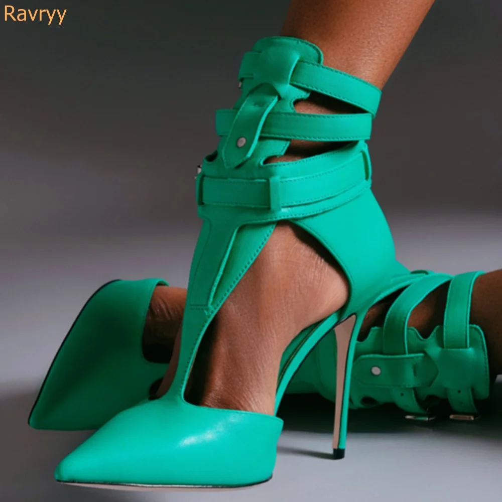 "Green Leather Pointed Toe Stiletto Heel Sandals Hollow Plus Size Fashion Catwalk T Strap Gladiator Sandals 2022 Summer New" * Buy Now Just For 63$