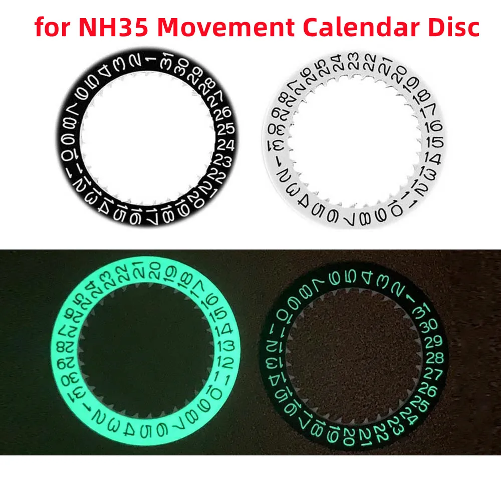 Green Luminous Watch Calendar Disc Black/White Date Day Wheel Disc Watch Modification Part, Only for NH35 Movement Accessories - Купить с бесплатной доставкой