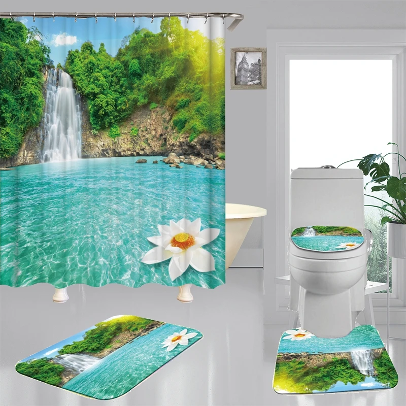 «Green Tropical Tree 3D Sky Ocean Sea Printed Curtain For Bathroom Shower Anti-Slip Bath Mat Set Toilet Cover Bath Screen 180*180» по лучшей цене на рынке! Всего за 16$ (1520рублей)