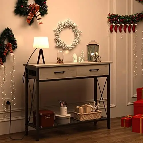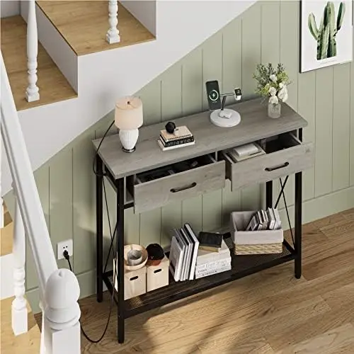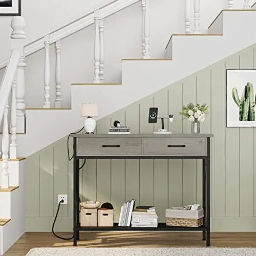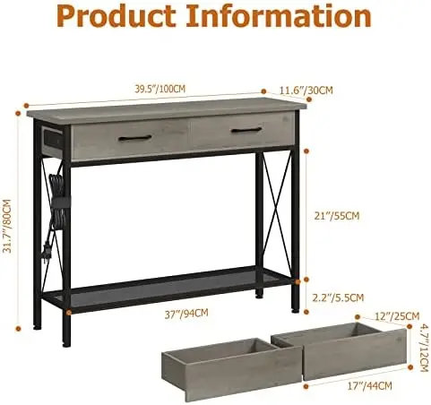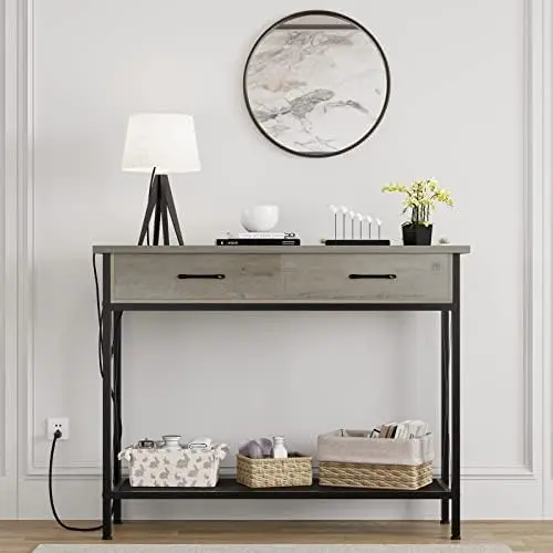 lOPdBkAlЗдесь вы сможете купить Grey Console Table with 2 Drawers, 39.3''Entryway Table with USB Ports and Outlets, Industrial Sofa Table with Storage S Tea tab с бесплатной доставкой до вашего почтового отделения.