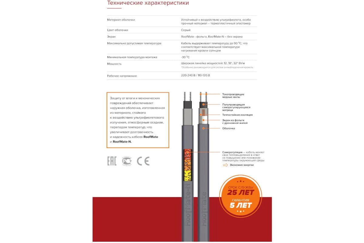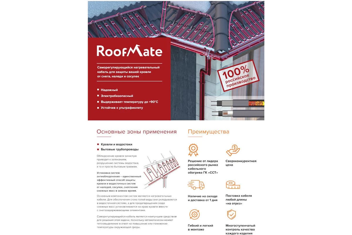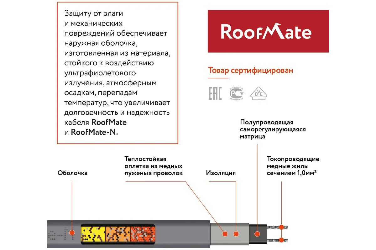 Греющий кабель roofmate