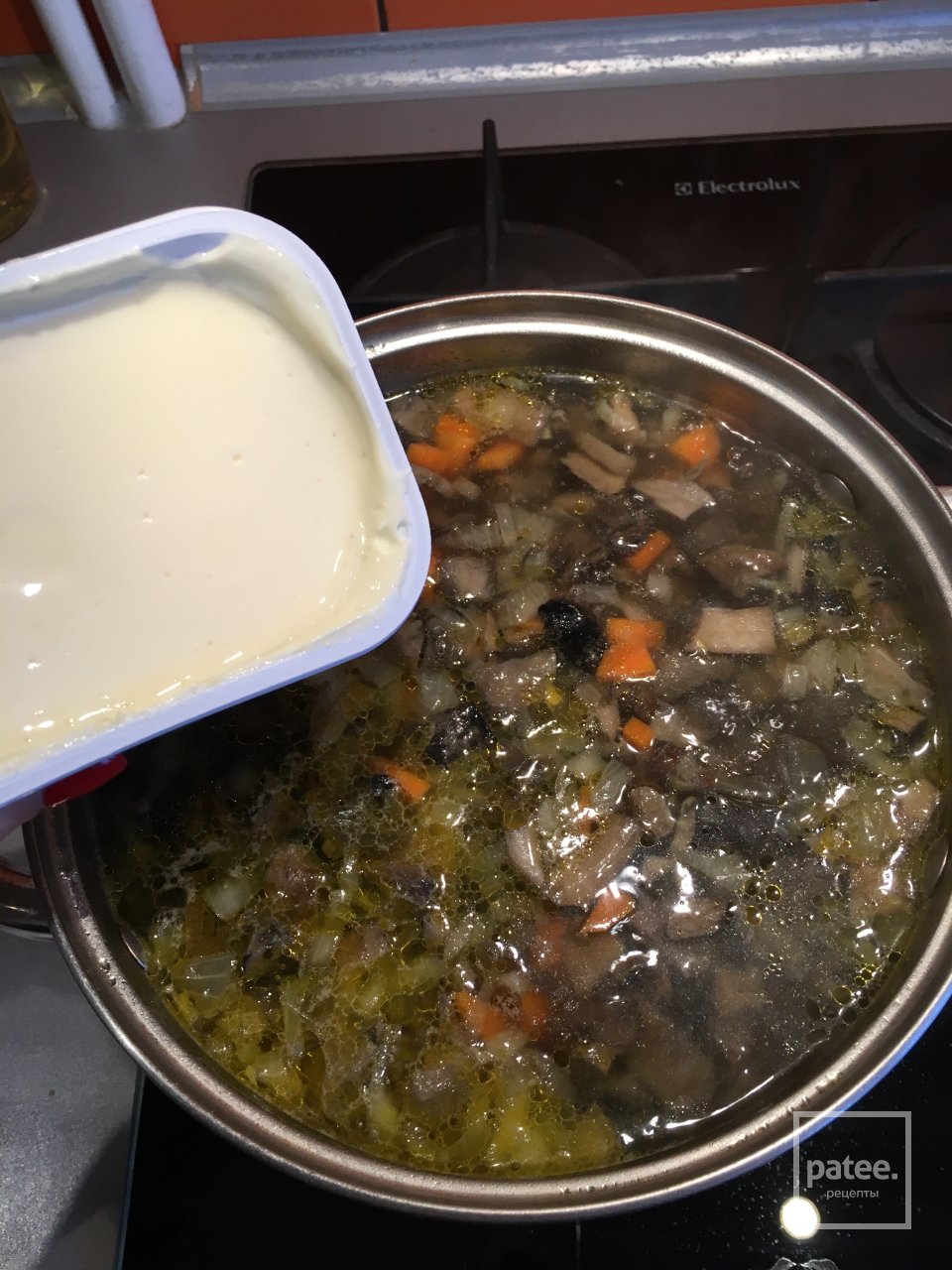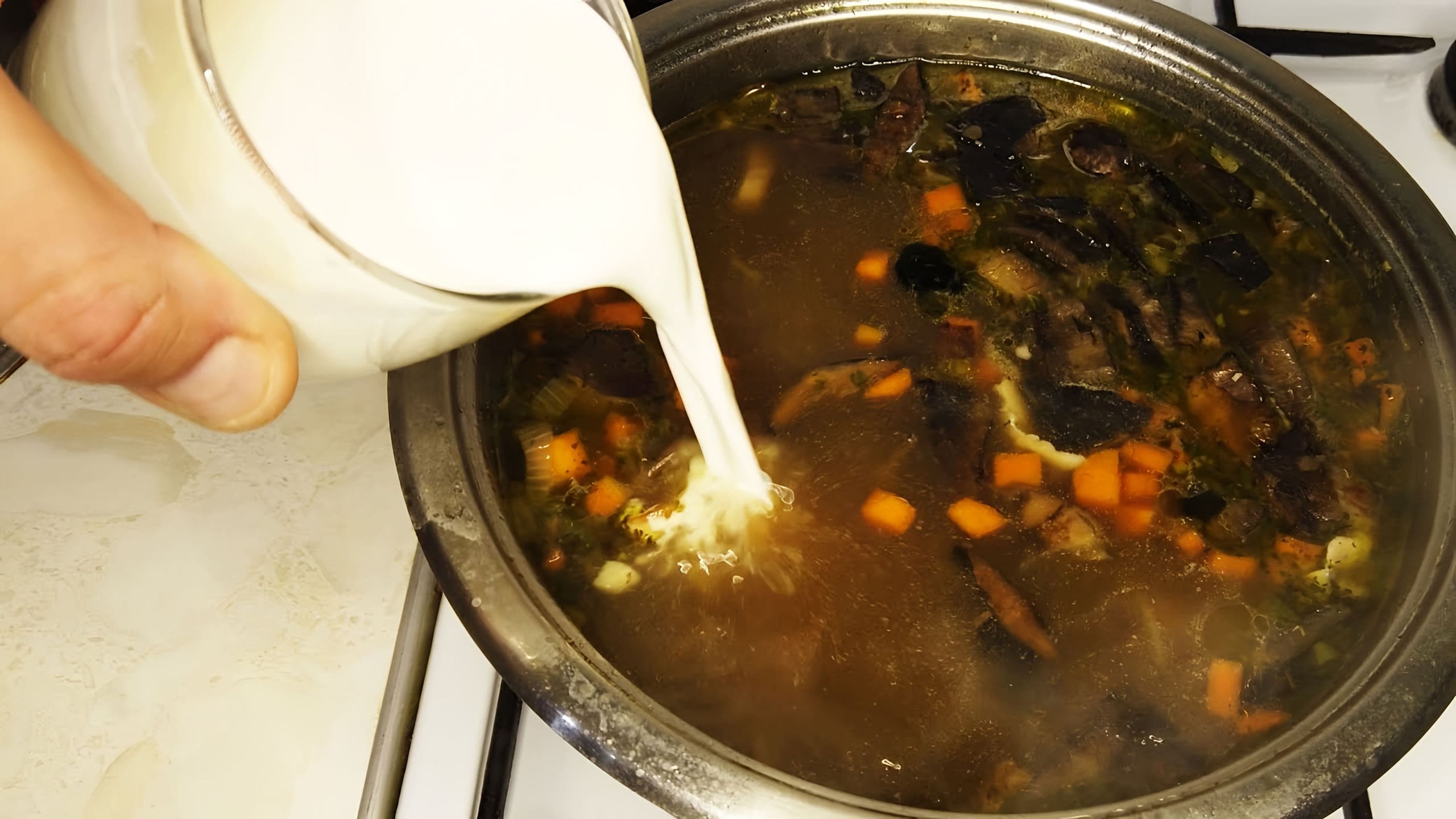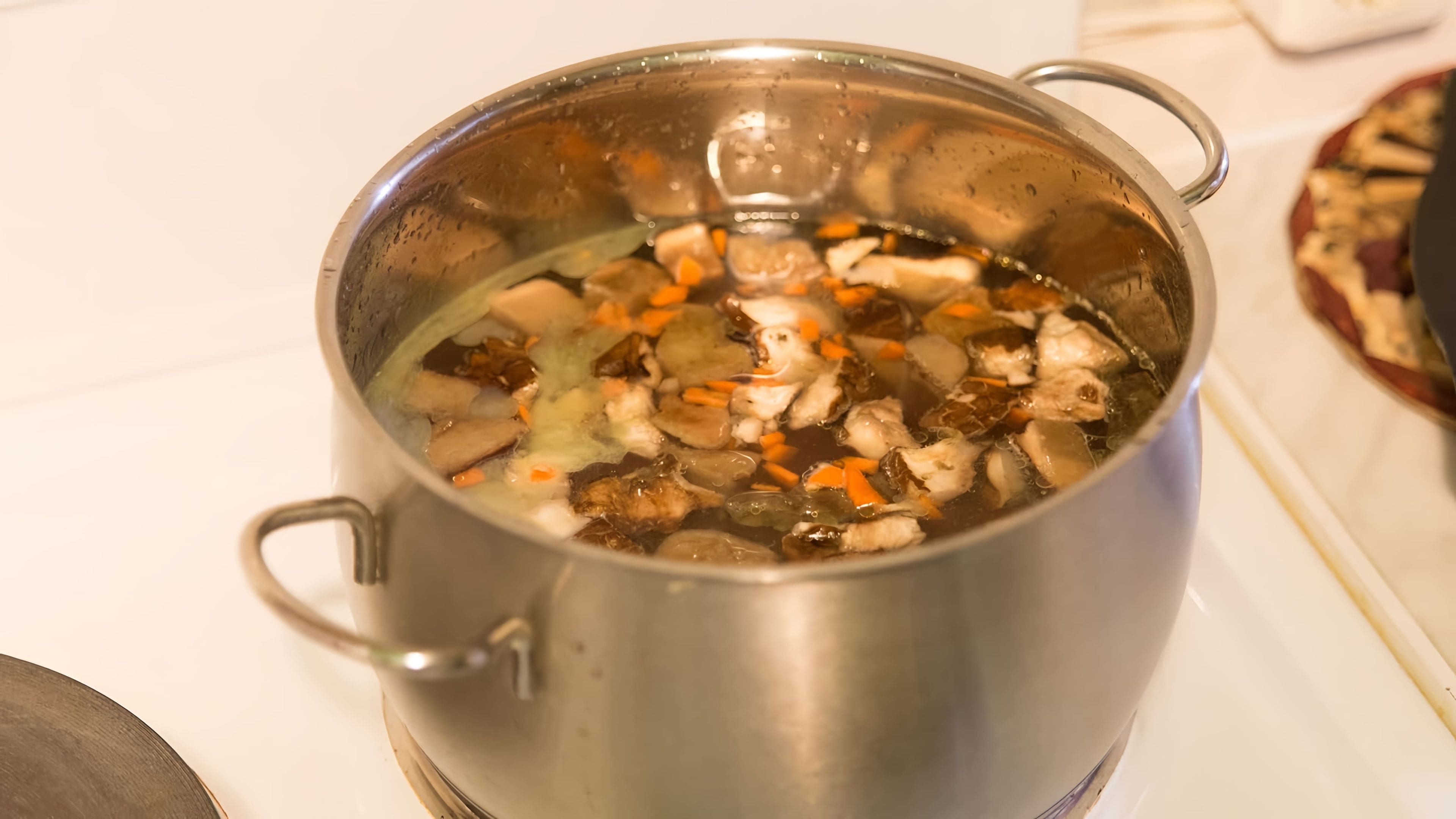 Грибной суп в кастрюле