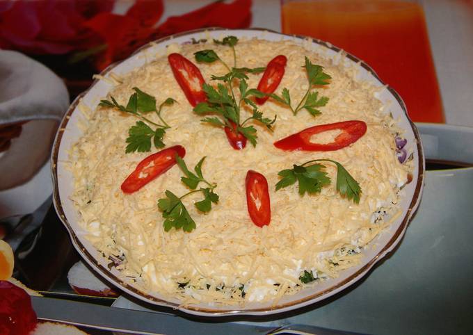 Салат Грибы под шубой с шампиньонами, рецепт с фото