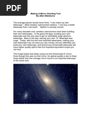 Much is also unchanged - mirror grinding techniques are very similar to those written up by Porter and Ingalls in the 20Β΄s and 30Β΄s . Many amateur astronomers still choose to fabricate their own instruments, for the pride of accomplishment, the gaining of knowledge and the insurance of quality .