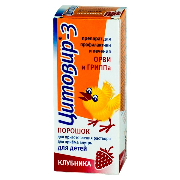 Цитовир 3 Этот препарат оказывает комплексное воздействие на организм, поскольку в его состав входят аскорбиновая кислота и бендазол, активизирующий выработку интерферона . Лекарство производится в виде сиропа для детей, капсул для взрослых и растворимого порошка .