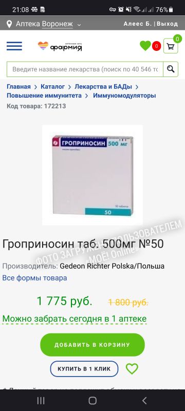 Гроприносин - официальная инструкция по применению . . .