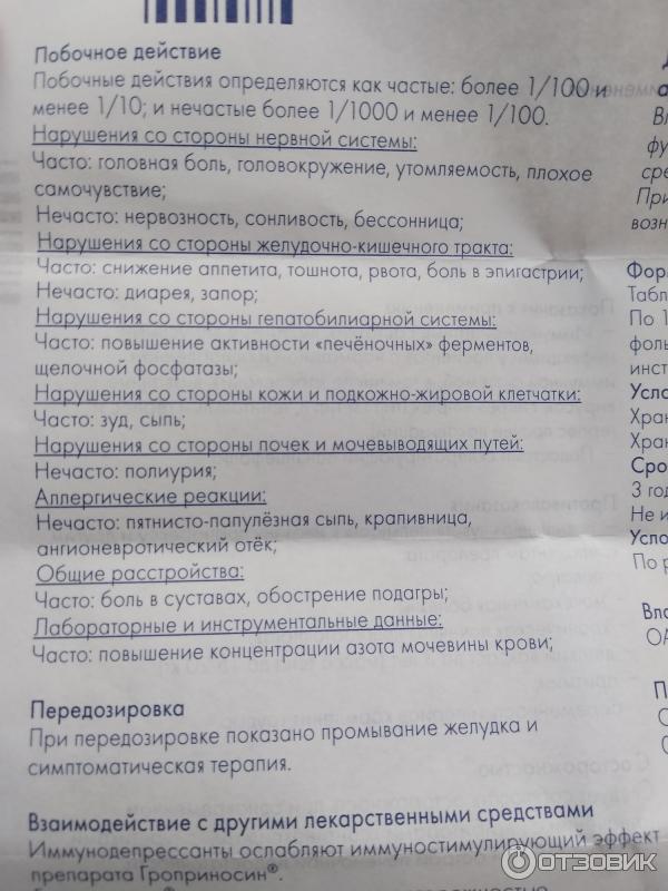 Гроприносин инструкция побочные действия