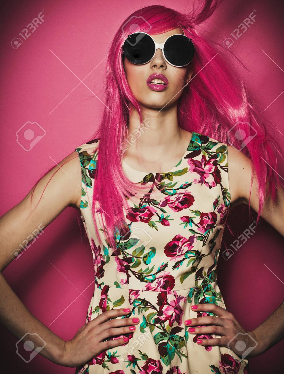 Grosse aux cheveux roses