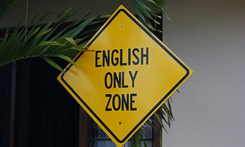 all other languages are blacklisted, usage of other language leads to instant ban / mute - Dont use english alphabets to text other language