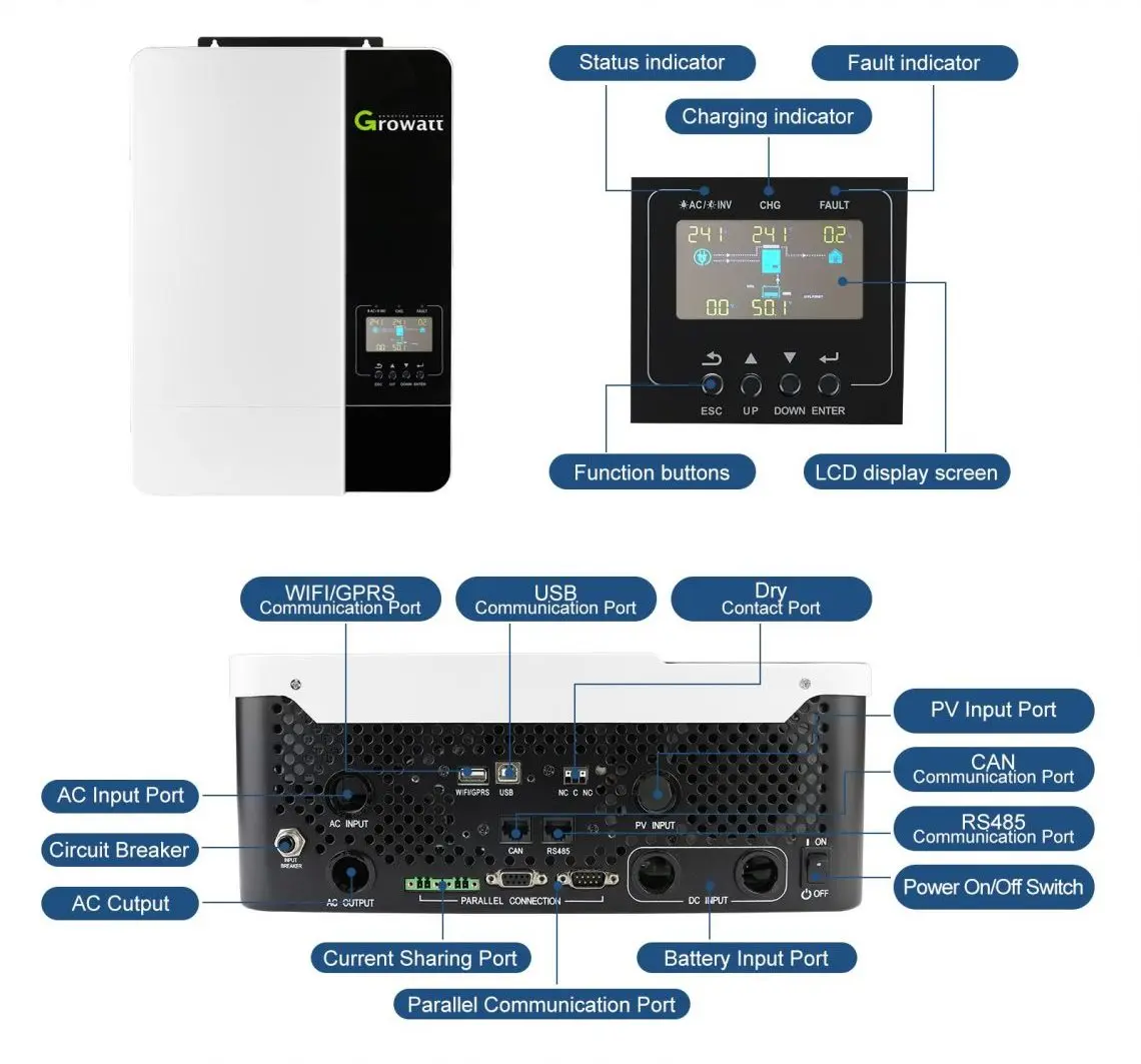 eNmGQFwTXHere you can buy Growatt MPPT BMS 48V DC Inverter Solar Battery Off Grid System 220V Output SPF 5000 ES 80A Solar Inverter Growatt Inverter with free delivery to your post office.