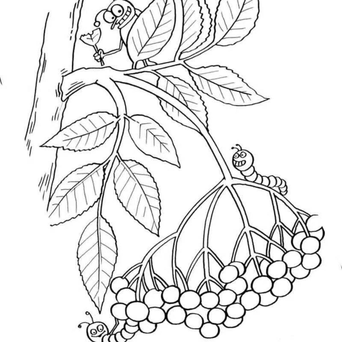 Раскраска лист рябины для детей