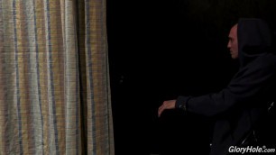 Grubaska bawi sie w gloryhole