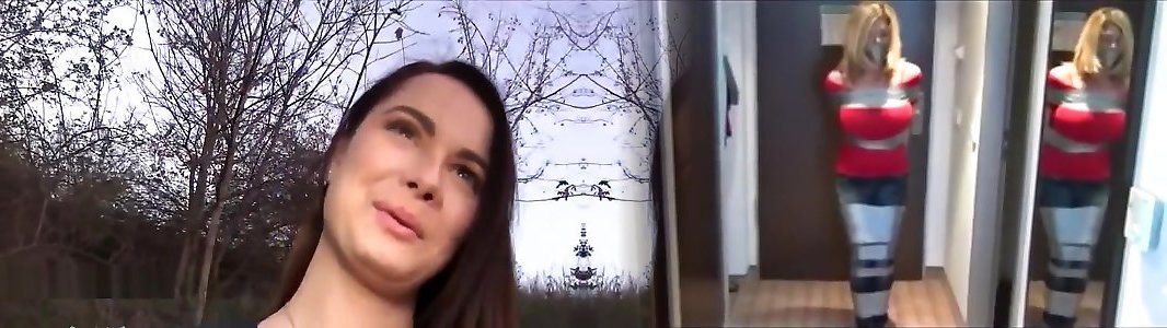 Грудастая брюнетка позирует на лесной поляне