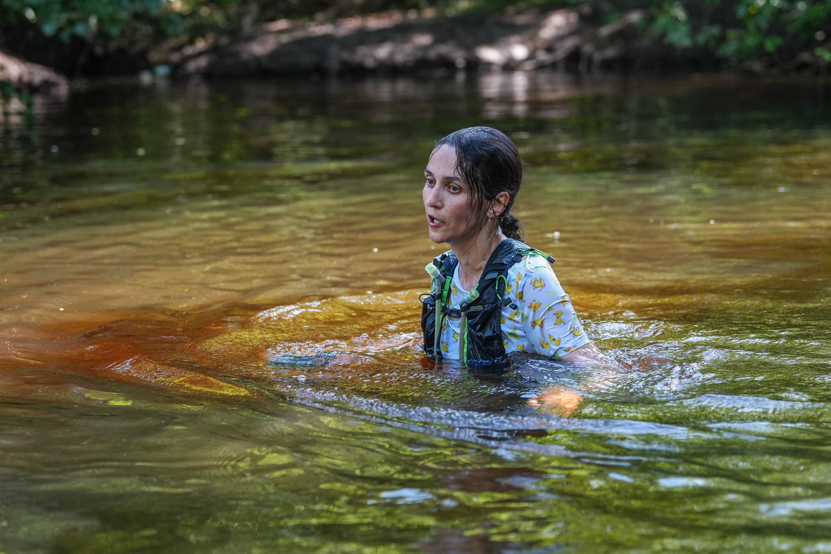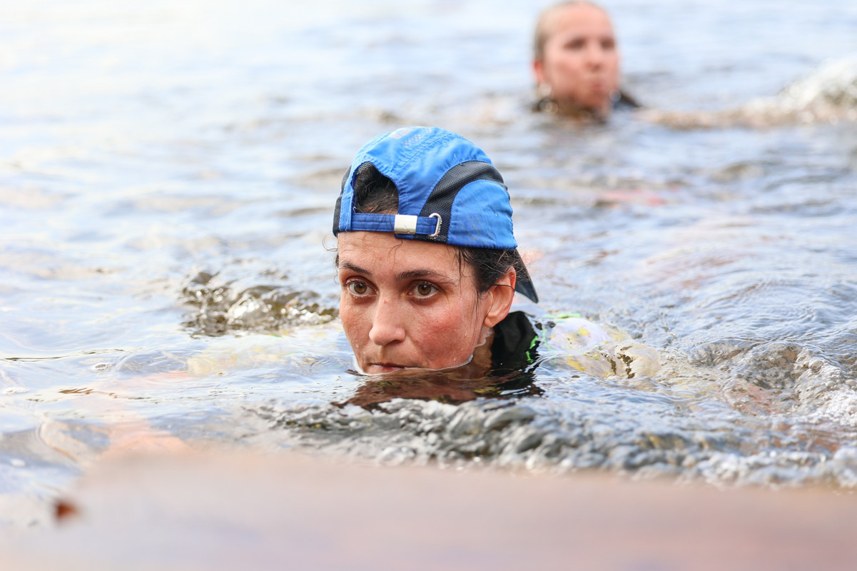 Мне говорили, что веревка будет натянута над водой, и плыть надо будет на спине, держась за нее. Но веревка явно ниже. Маршалы требуют плыть, обязательно держась за веревку, течение сильное. Выпускают нас с интервалом метра два, в том порядке, в котором мы прибежали. «В лесу успеете посоревноваться», приговаривает один. Другой отмечает, что мы (девушки в смысле) боремся за третье место. То есть впереди только двое.