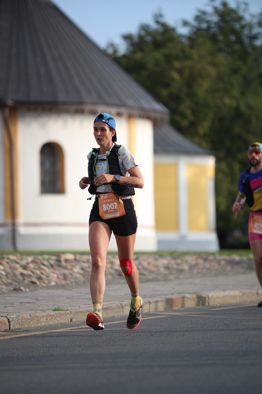 Пара слов о экипировке. Шорты, футболка, кепка. Жилет иновейт, он у меня один под литр воды – две бутылочки. Десяток гелей, телефон, спасодеяло, таблетка лоперамида. До последнего не могла определиться с кроссовками. Взяла в Суздаль две пары: адидасы, в которых бегала три прошлых Грута и еще кучу стартов, и совсем новую альтру. Не решилась бежать в новой паре, возможно, это было ошибкой.