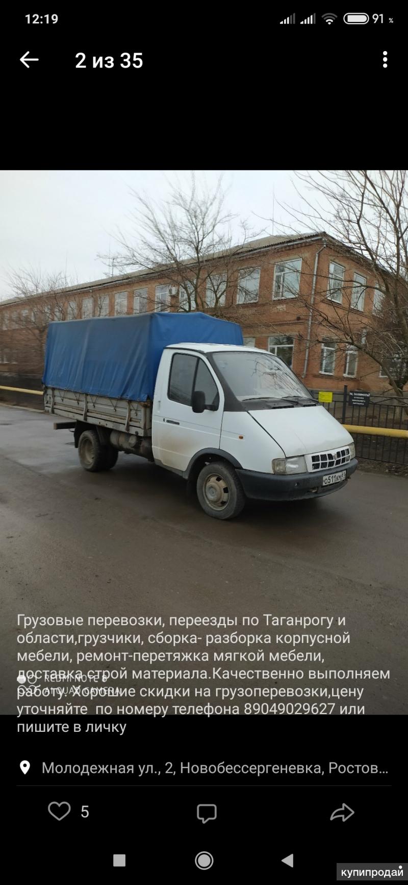 Грузоперевозки таганрог газель