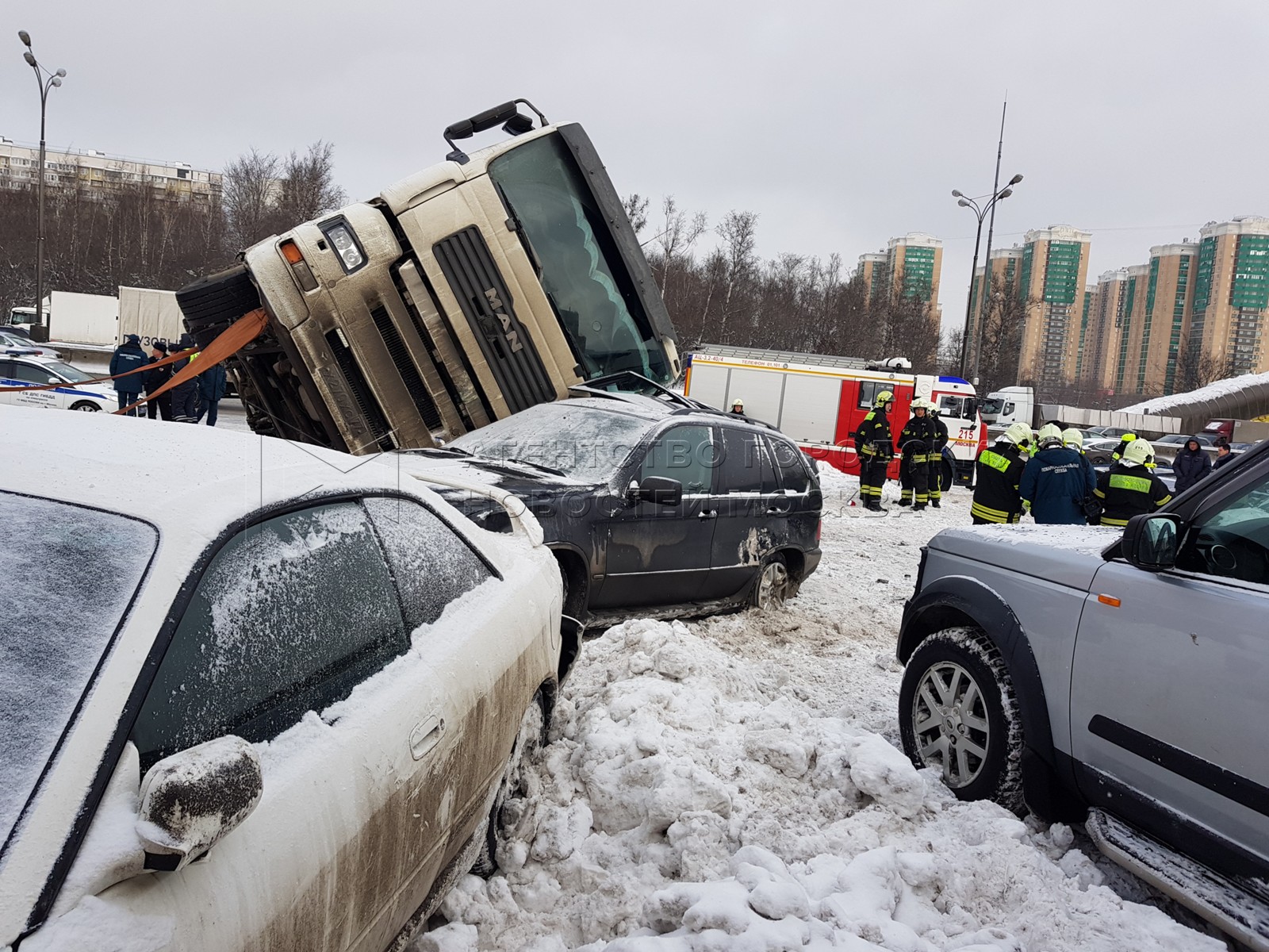 Грузовик протаранил машины на мкаде 102 фото