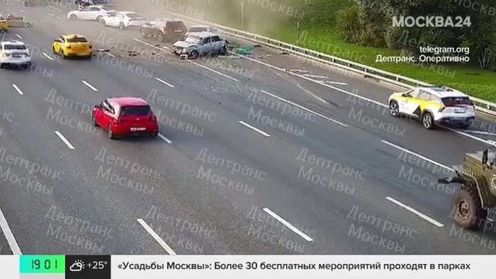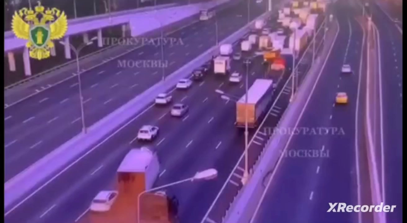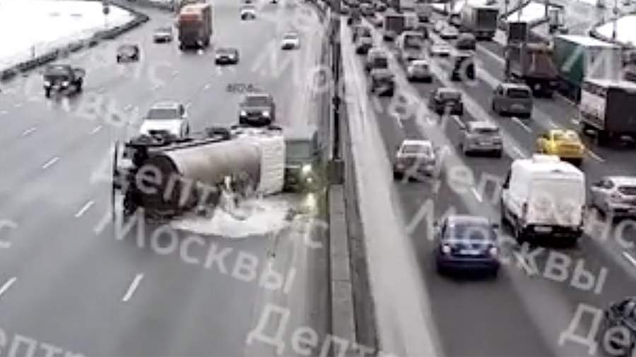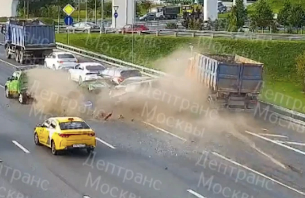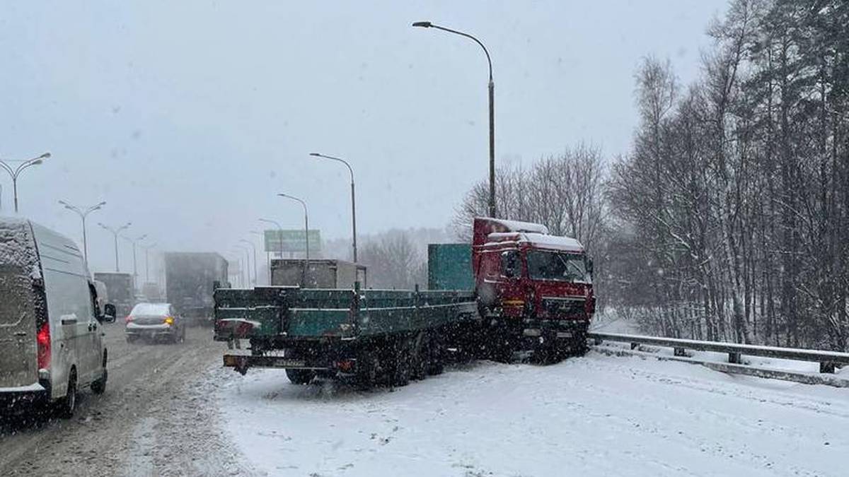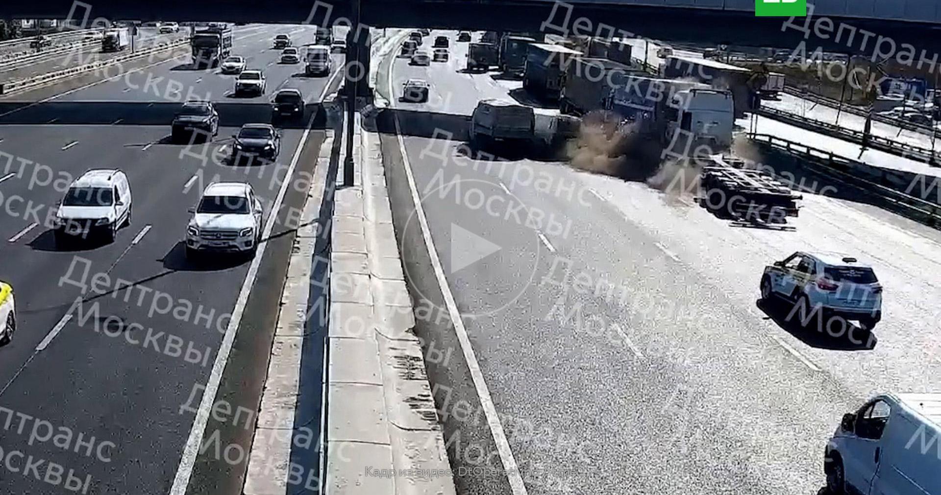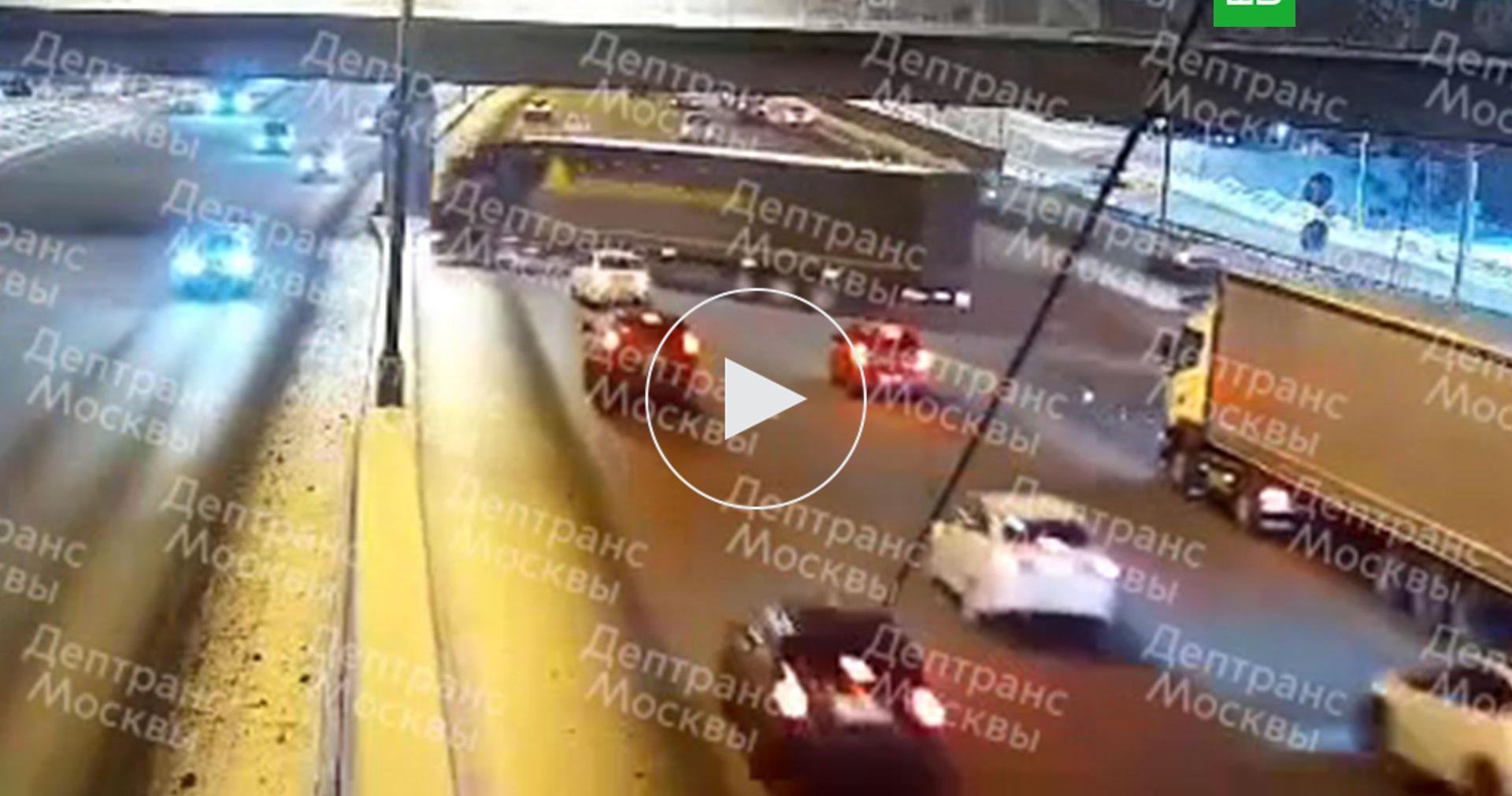 Грузовик протаранил машины на мкаде