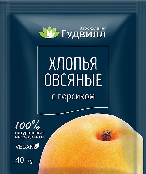Хлопья овсяные Гудвилл персик 40 гр. Гудвилл хлопья овсяные с персиком. Овсяная каша Гудвилл. Каша овсяные хлопья Гудвилл/