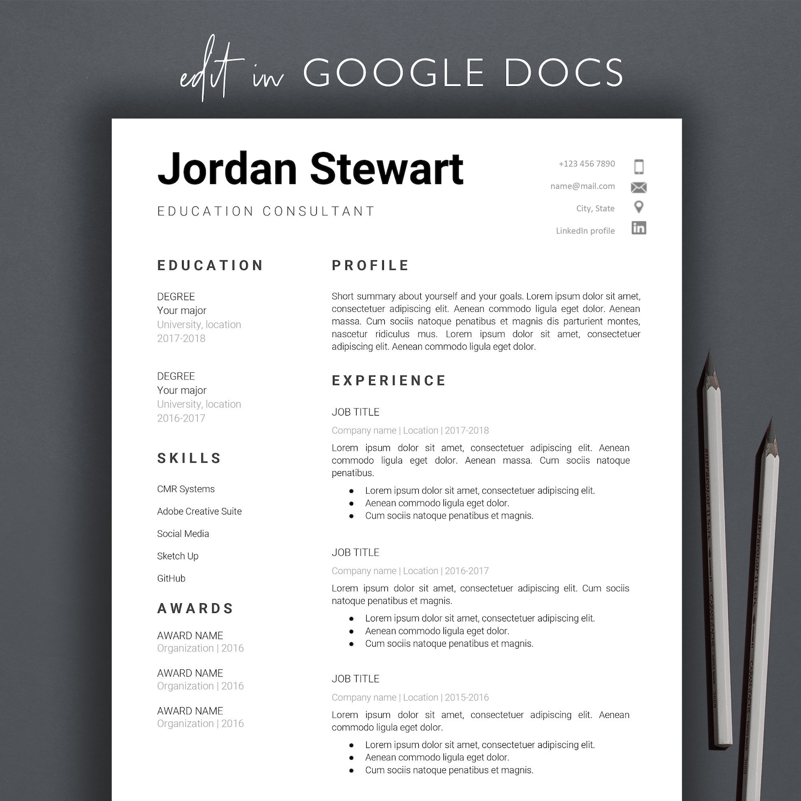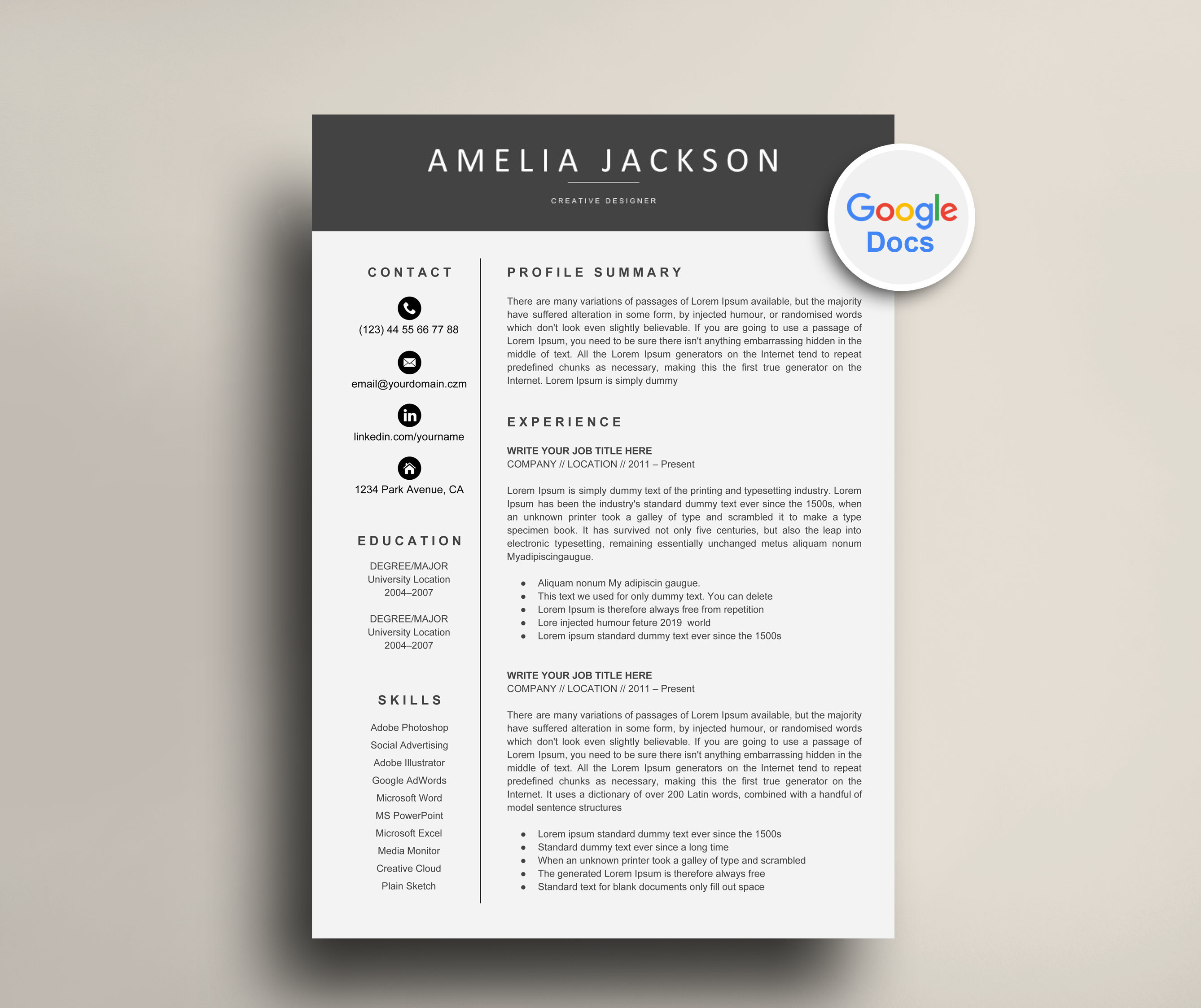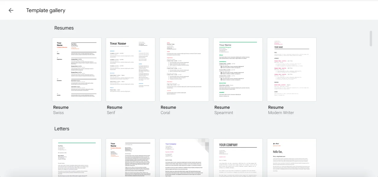 Гугл документы резюме