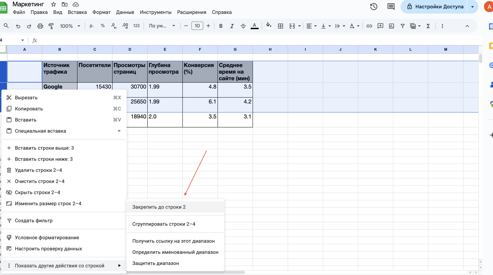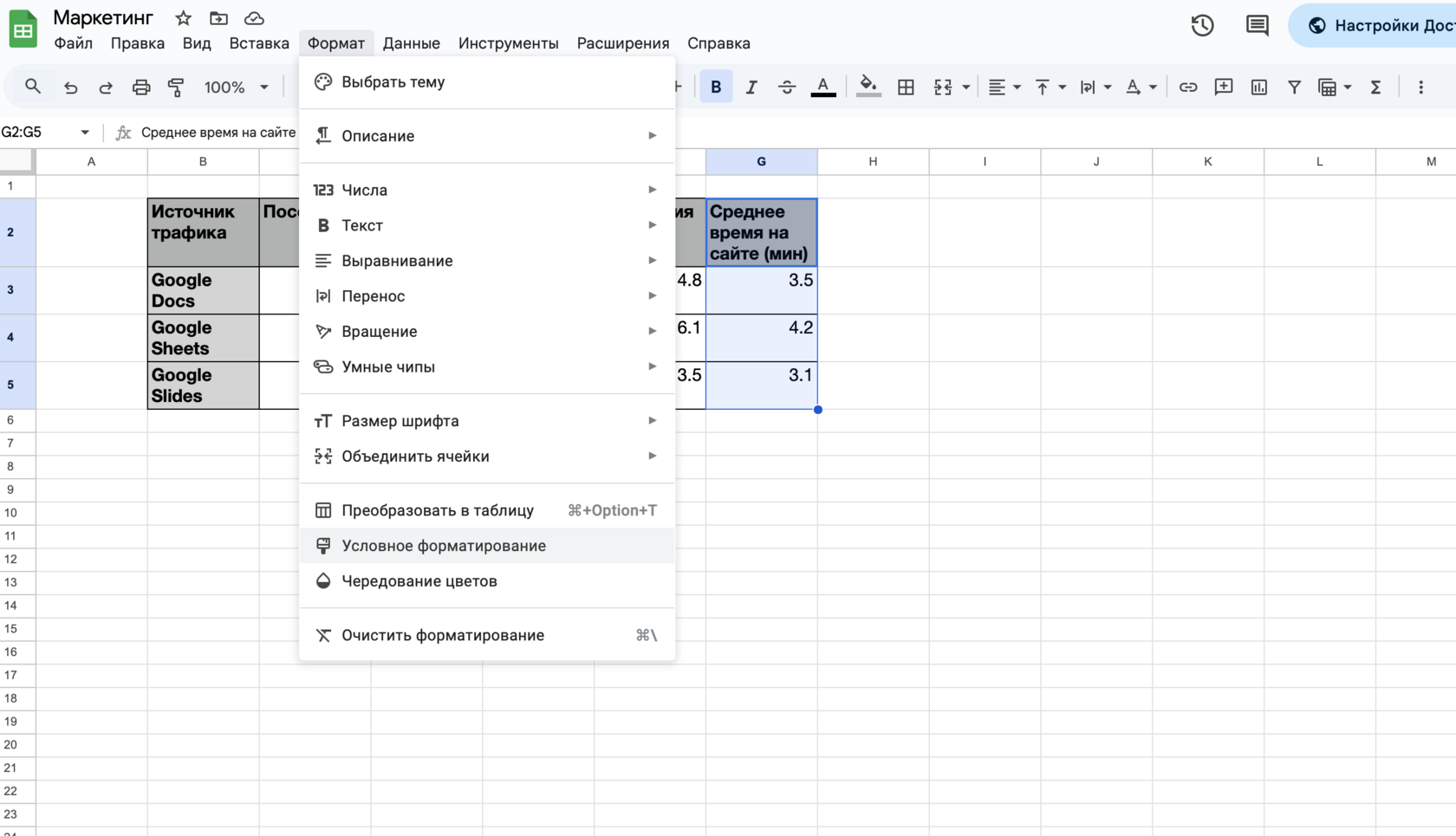 Гугл таблица статистика