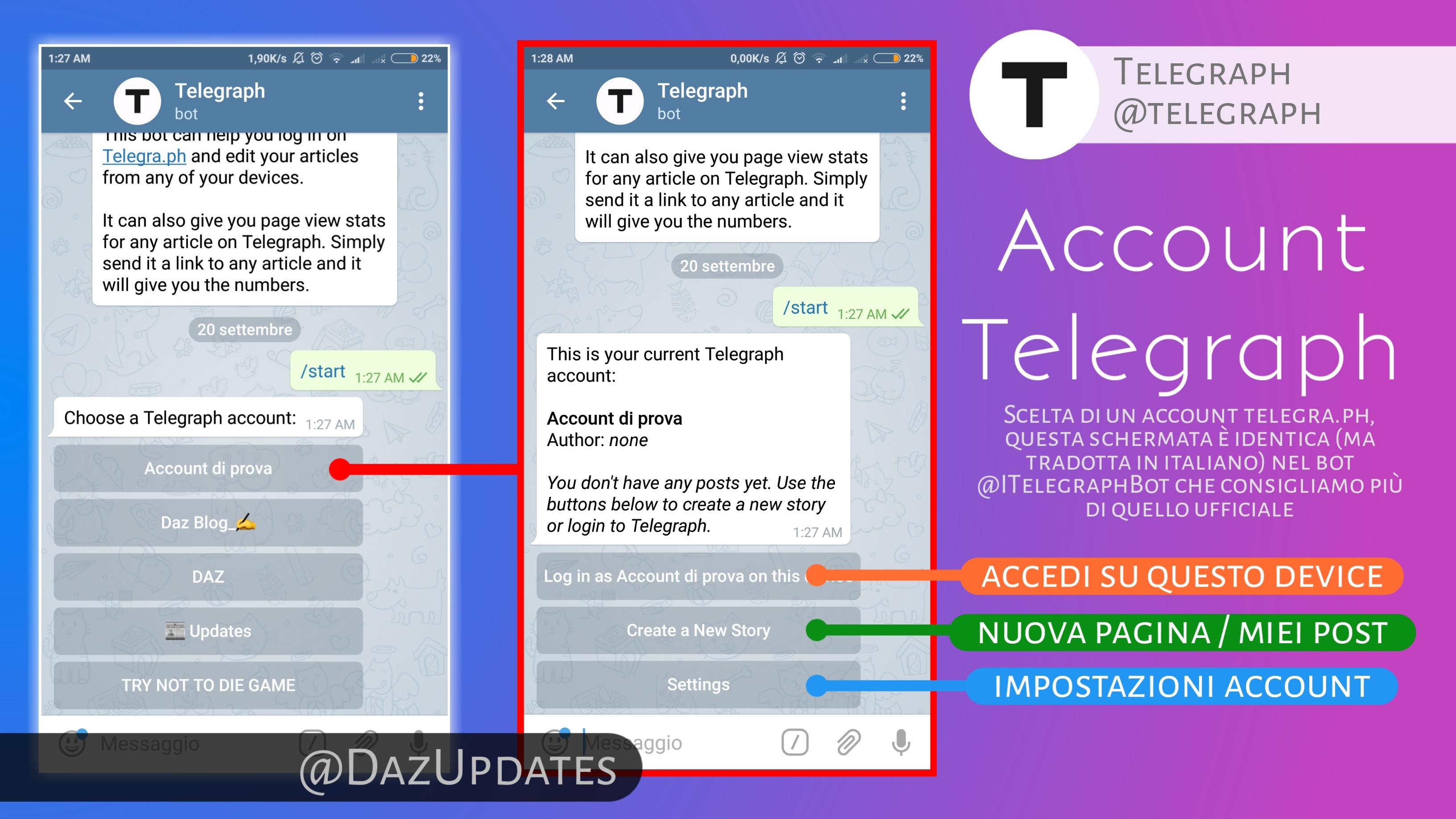 😉Tips & Tricks: non perderti le funzionalità di @ITelegraphBot, crea un account direttamente con questo bot, gli account non possono essere spostati da un bot all'altro dato che questi lavorano in modo indipendente